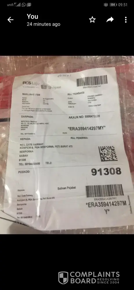 Barang masih tidak sampai kepada saya...tak ada call atau mesej