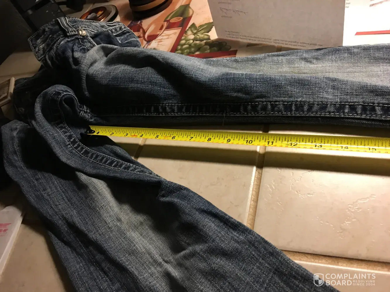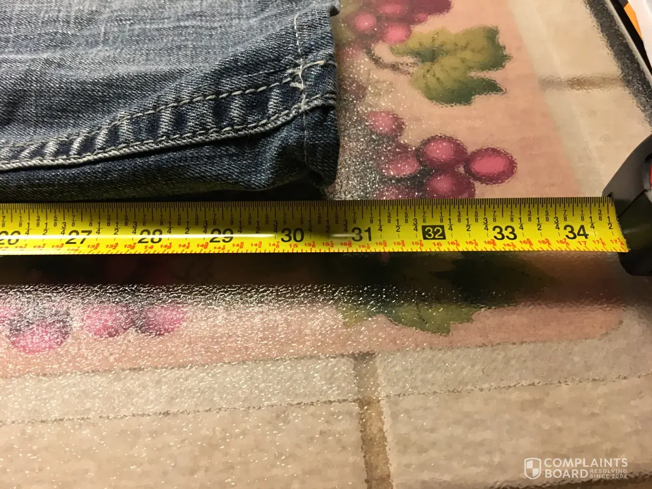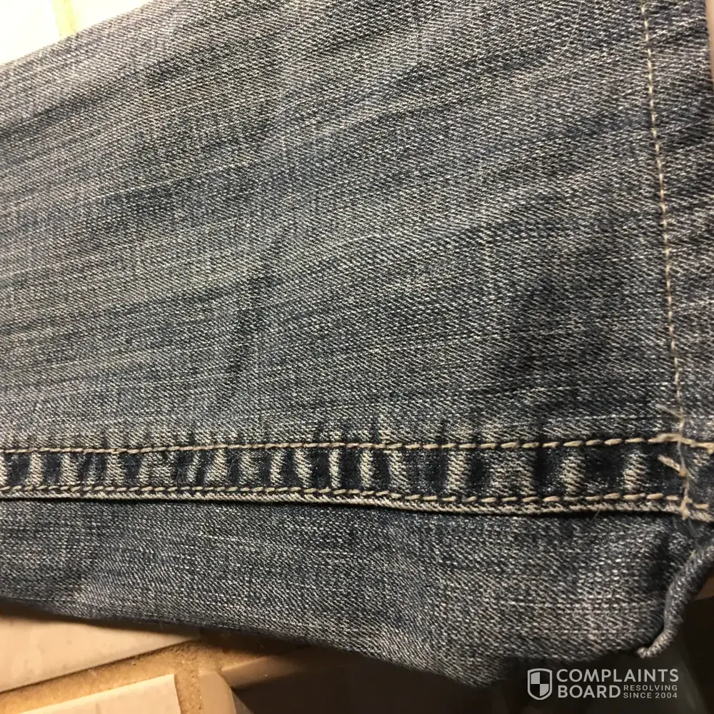 Jean was said to be in "perfect condition ", a 34" inseam. The jean had crooked seaming, a 30" inseam, rolled up hem from dragging, and a disgusting odor! I have sent all this info previously: ComplaintsBoard.com click here: