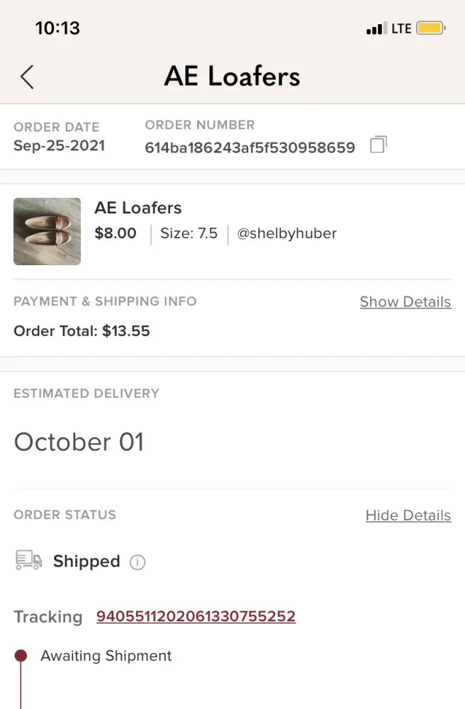 I ordered a shoes dated sept 25 and tracking showed it was shipped 0ct 1. after that not updating anymore and contacted poshmark several times and waited 11 days as instructed which is horrible but poshmark havent been refunded me yet for the item I paid but never recieve it.