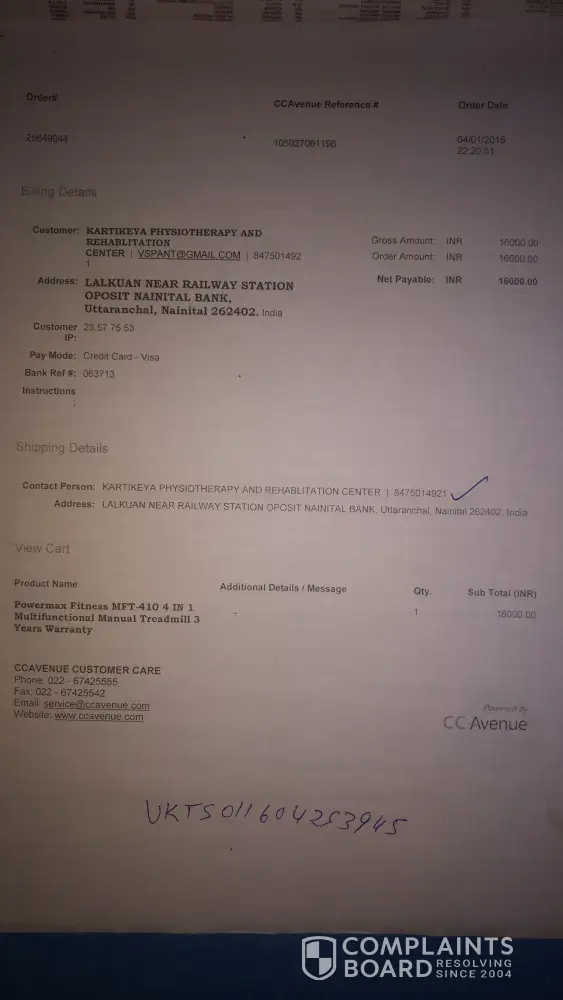 Every time I remind them about my problem they make a false promise... I think I wasted my money, time and fitness off course by purchasing this costly fitness product by a fake brand powermax fitness..