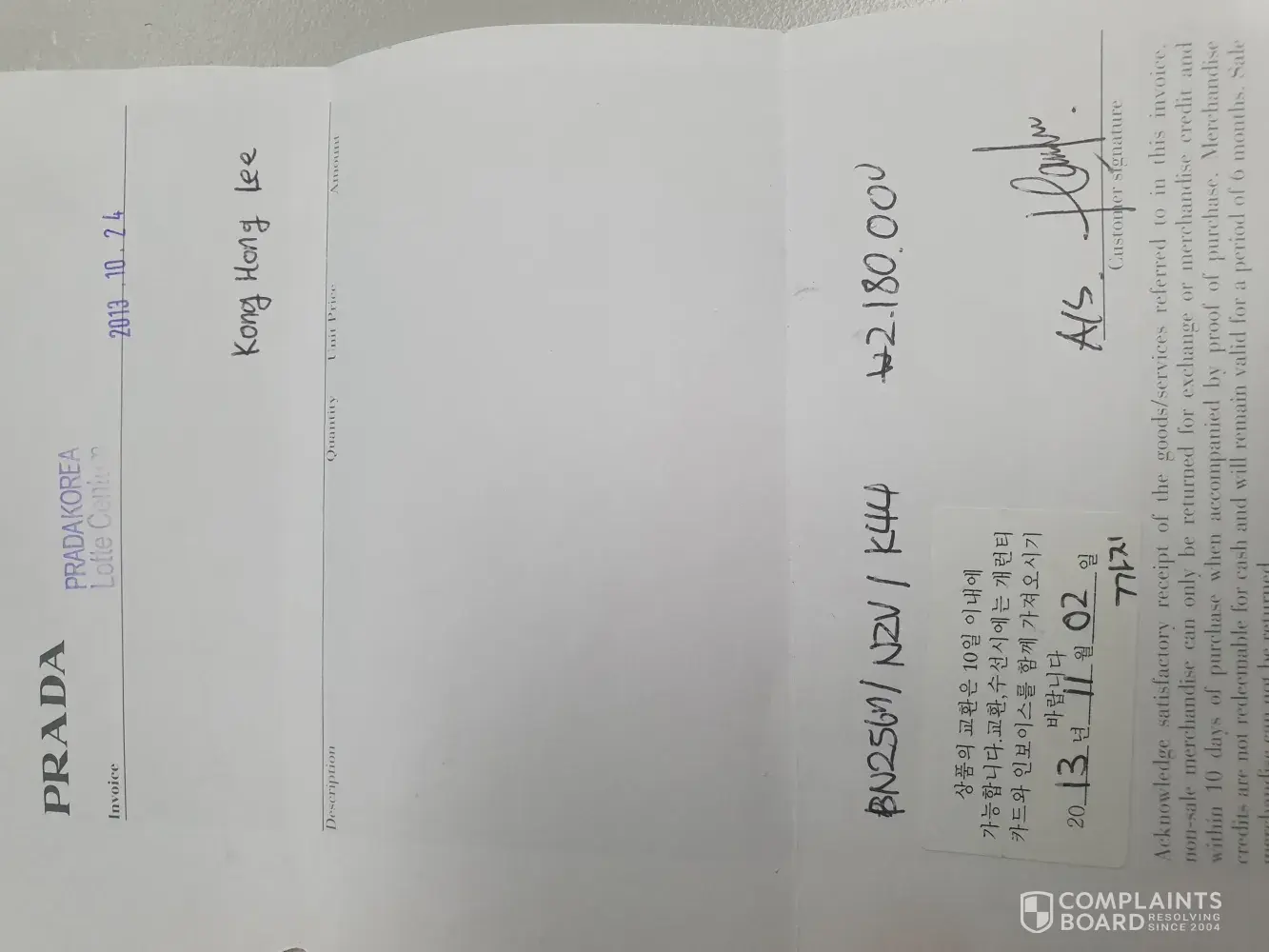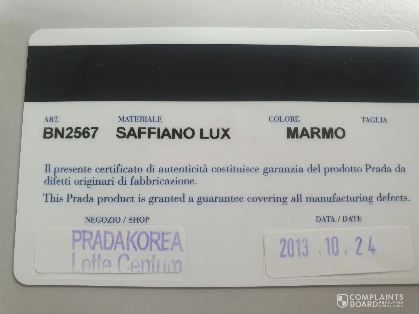 I purchased a prada saffiano lux (color: marmo) on 24 october 2013 from prada boutique at lotte centum city, busan, korea. This is my first purchase of prada bag, of which, I was very proud to be able to carry your prestige brand the past 5 years. However, to my disappointment, a genuine second hand shop seller in malaysia (which I am frequent of to sell my pre-loved genuine branded bags) told me that my prada bag is fake!, despite providing all the relevant documents. I had authenticity card and receipts provided by prada boutique in korea. The bag expert also showed me the flaws of the bag, which is very different from the originals, such as the finishing quality at the edge of the bag and strap (mine is splitting and not well concealed) and the silver metals used around the bag (my zipper is rough and stained with dots, the finishing of the metal clasp are not as fine as the originals). I appreciate if someone from prada hq management could contact me on how to resolve this matter. I paid krw2, 180, 000 for this bag and I expect a refund or at least an exchange for an original at your original prada store. Such a humiliation and shame to be carrying your brand, only to find out it has been fake all the while! You can email me at [protected]@gmail.com if you require more evidence, I will gladly provide photos and videos of your fake bag! Or better, please call me at +[protected] to discuss this matter before I escalate this matter further!