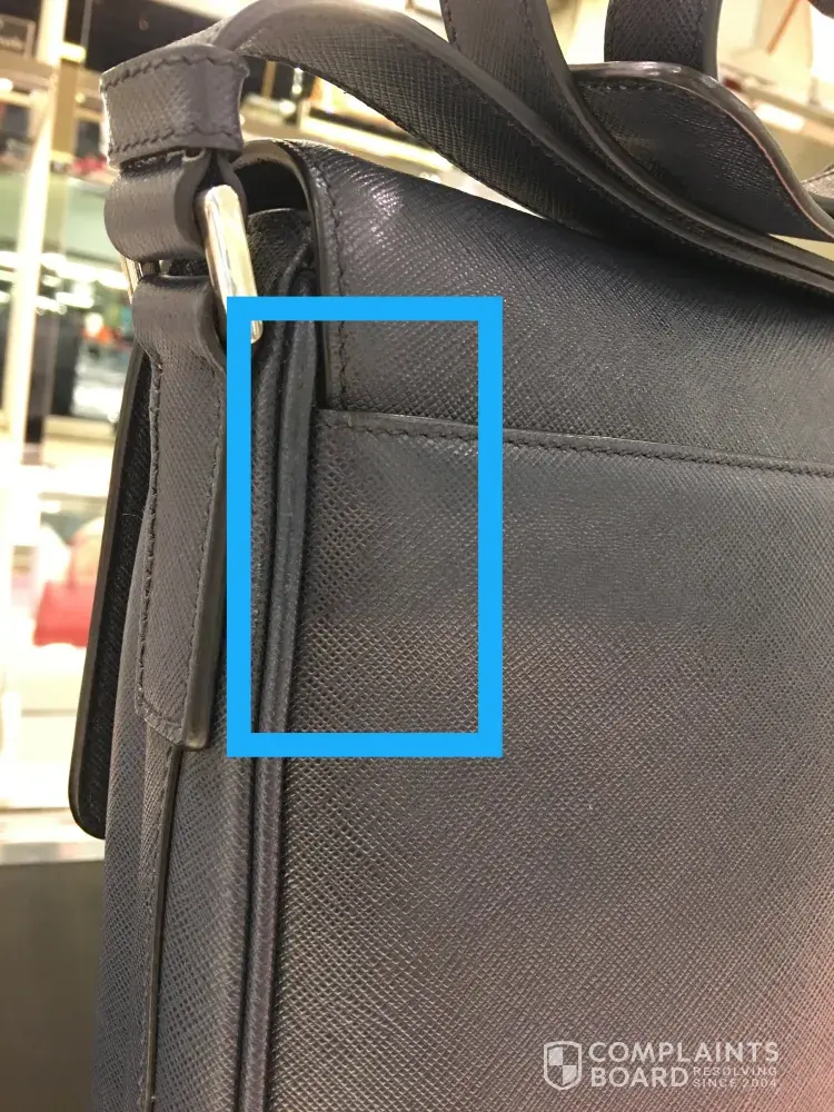 23 feb 2017, i was inform the bag are retify and repaired and ready for collection, when i start to check my bag of the mention defect and repair area, it was not done properly, and new defects was found at both side of the ceathek piping strecth marks and it was so clearly that can be seen, and i was so disappointed about your prada quality check, how can this happen to such as well know prada boutique outlet, so i rejected to accept and ask to get my memtion bag repair again ( attach reciept spg 0093086).