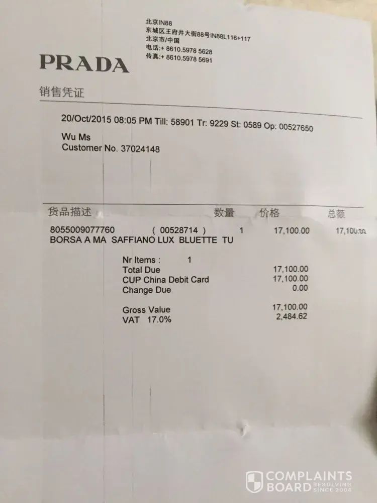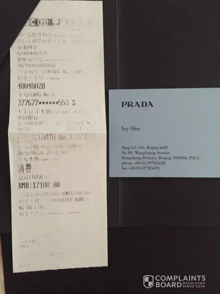 No doubt you have reviewed my case and subsequently referred this case back to my home country ie Prada Boutique Pavillion In Kuala Lumpur but I did not get the expected professional advise from your company.