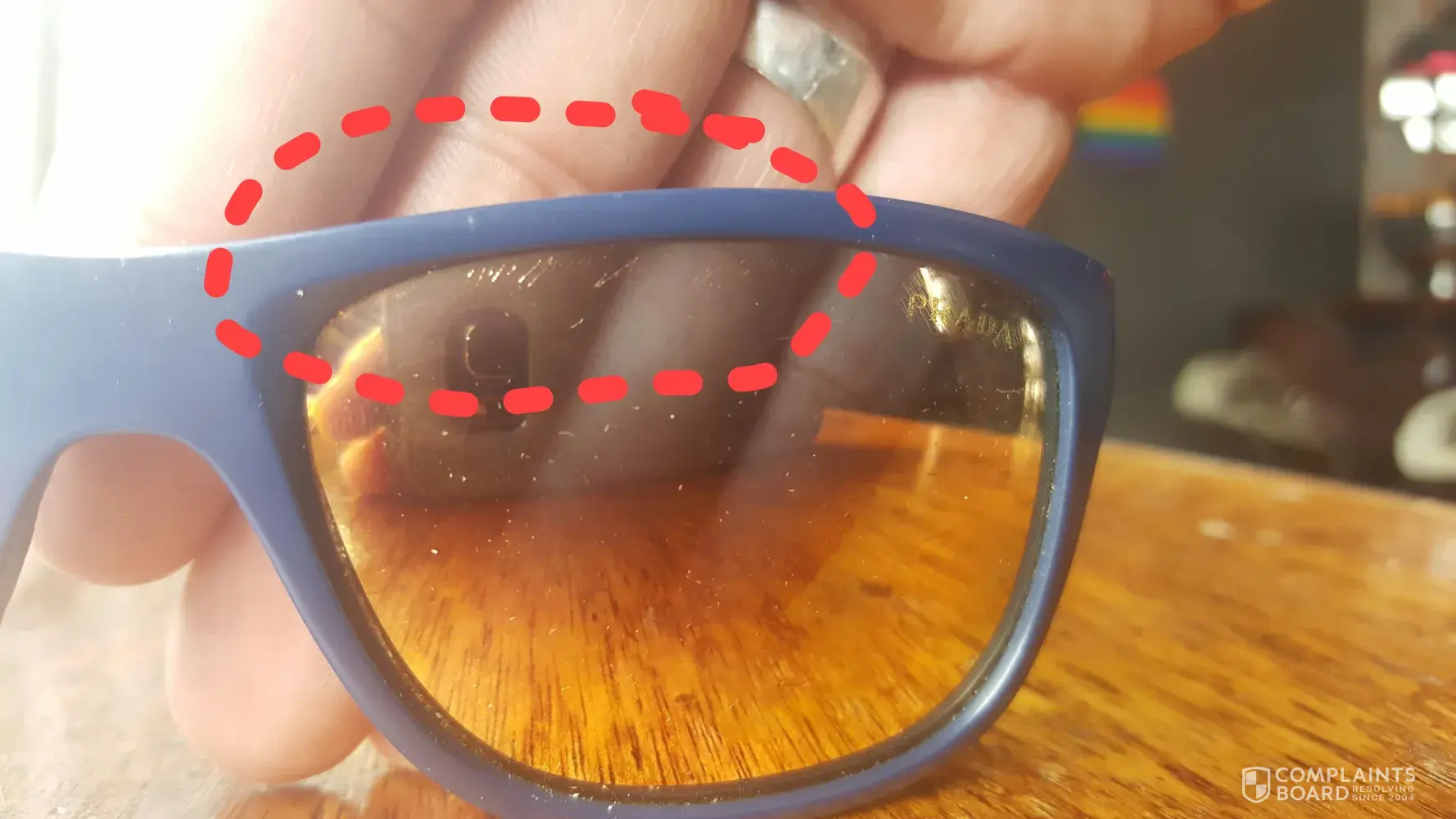 Having been a keen Prada supporter I am shocked at the service received in terms of a fault repair on my sunglasses. In fact, no repair was attempted as the fault was found to be caused by owner? I find this rather strange as the lens coating is peeling away form under the frames itself. When this "peeling" began, of course I put them away as they looked "cheap" and would even go as far to say that they looked like a rip-off pair..fake. I put these in my cars glovebox and coincidently they received a scratch from rolling around. Now they are scratched, peeling and the nose piece has come off as well.