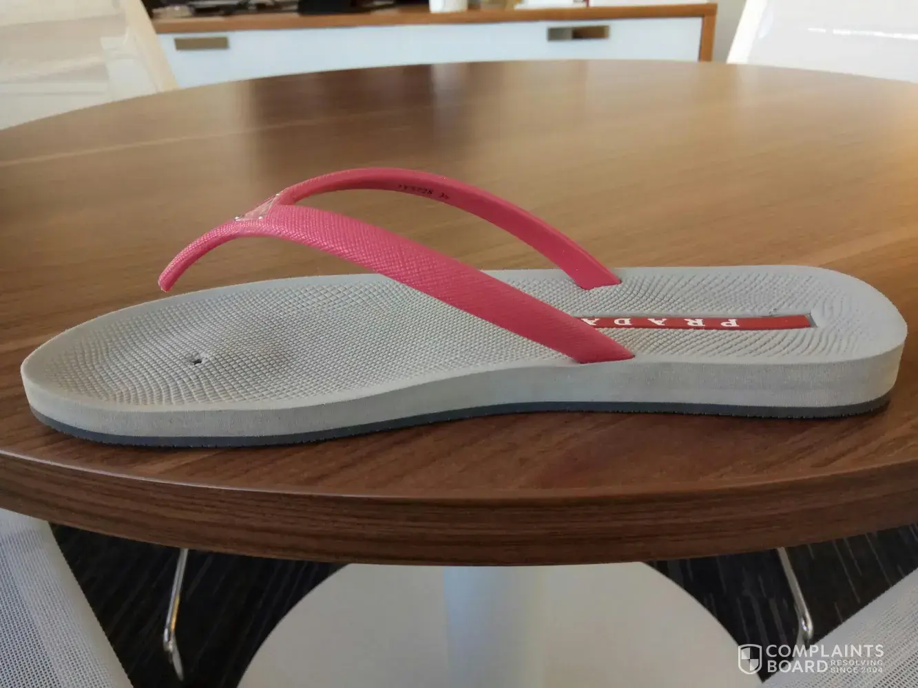 The flop flops were bought in Prada shop in Italy and were used only a few times before one of them torn out - see the photoes attached. I would like to request a refund. Please kindly contact me at l.akhmatova@angelini.ru.
