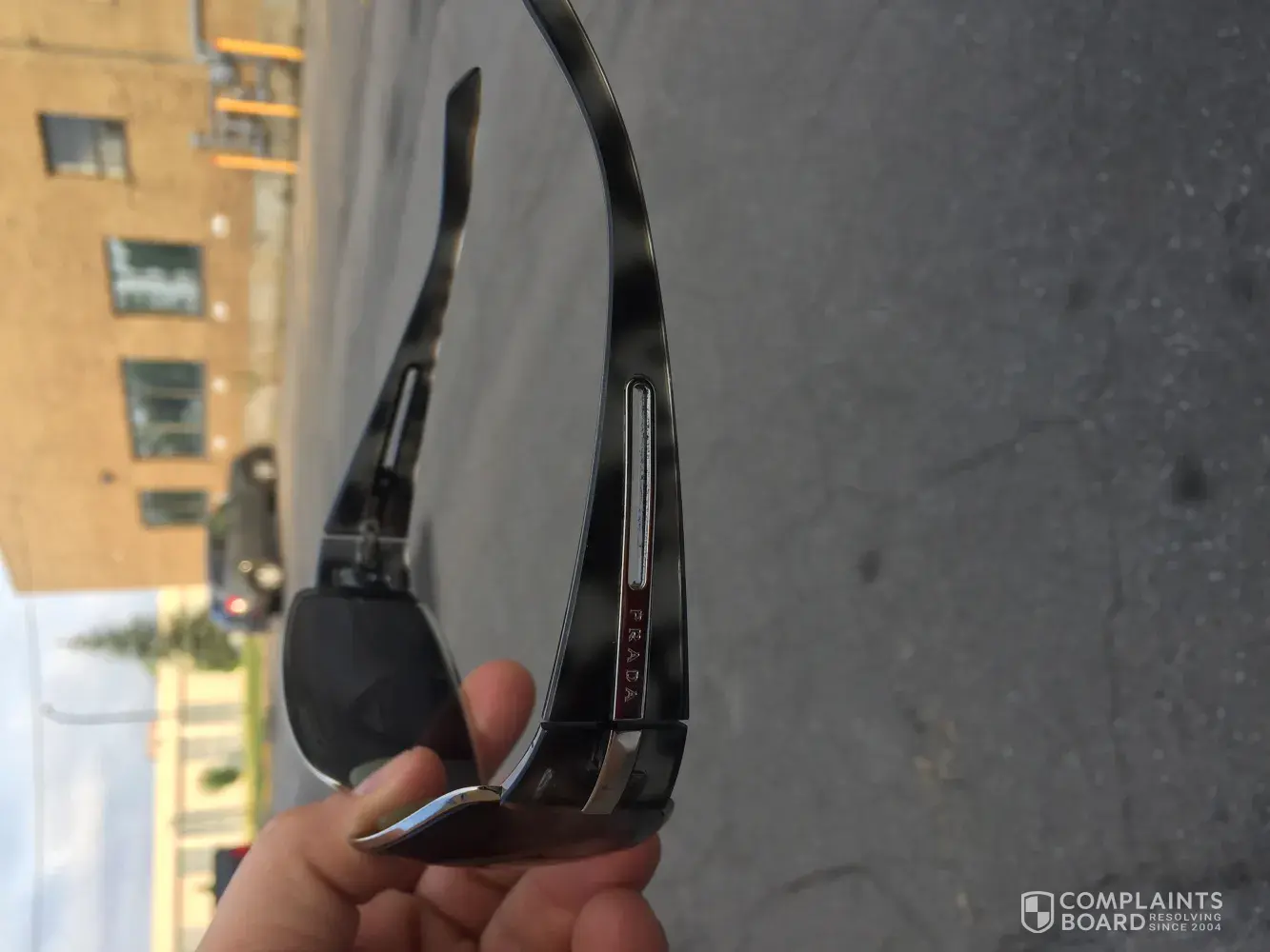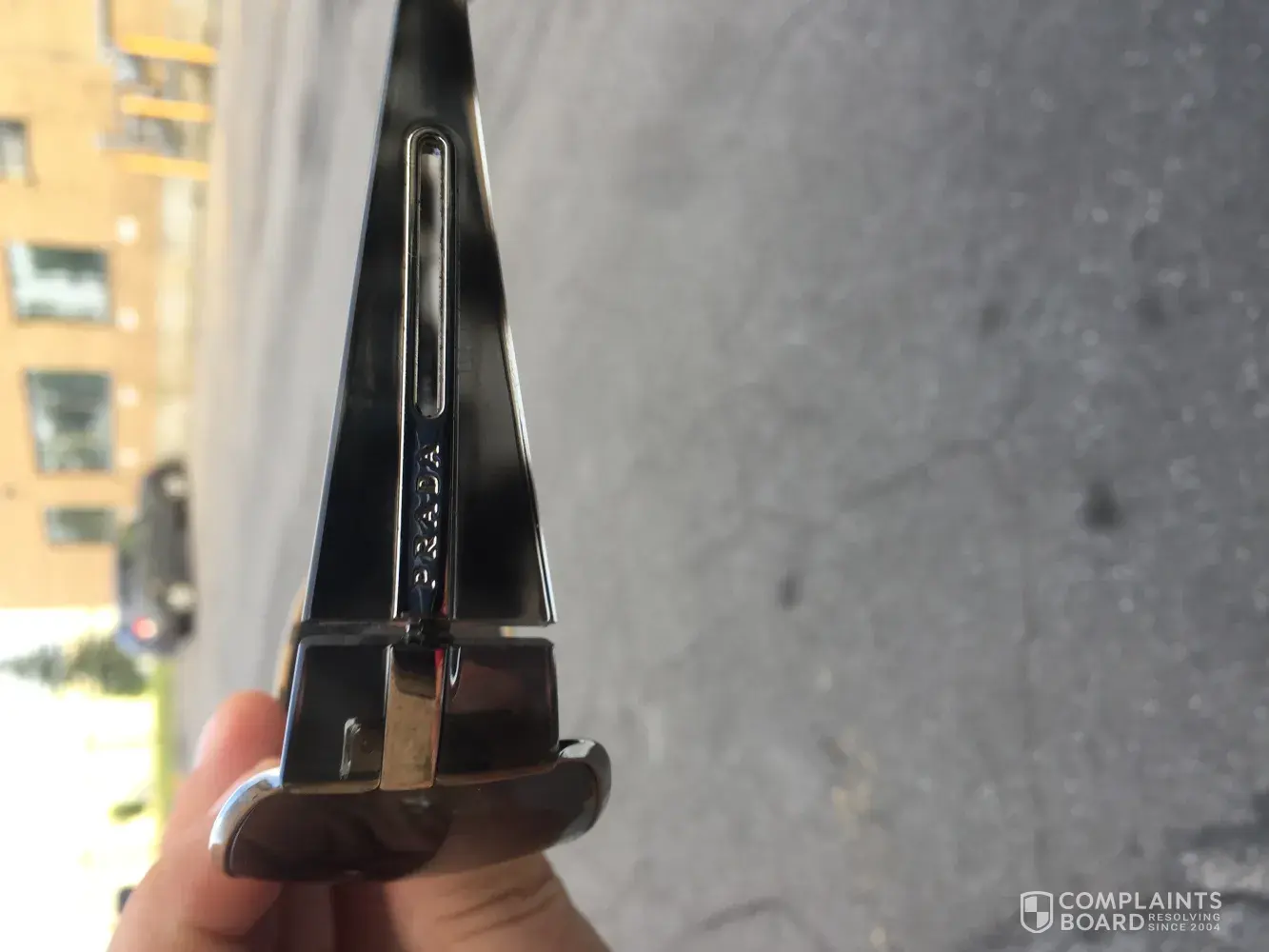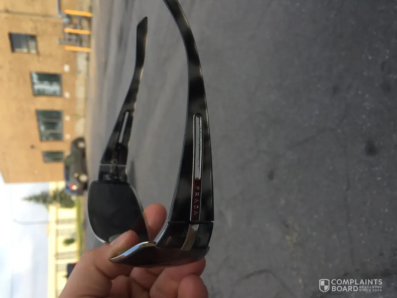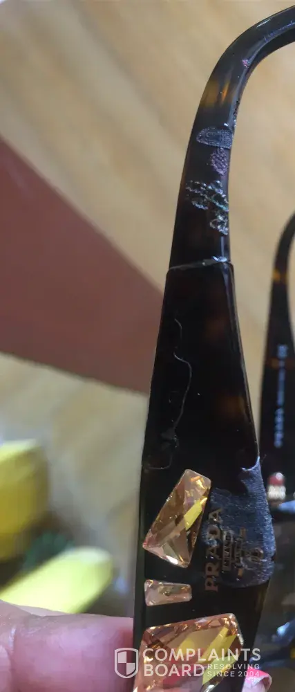 Prada sunglasses side surface of the frame chipping off, need to get repaired or a new pair, can't buy expensive stuff and starts getting chipped, need immediate attention, major manufacturing defect seems .