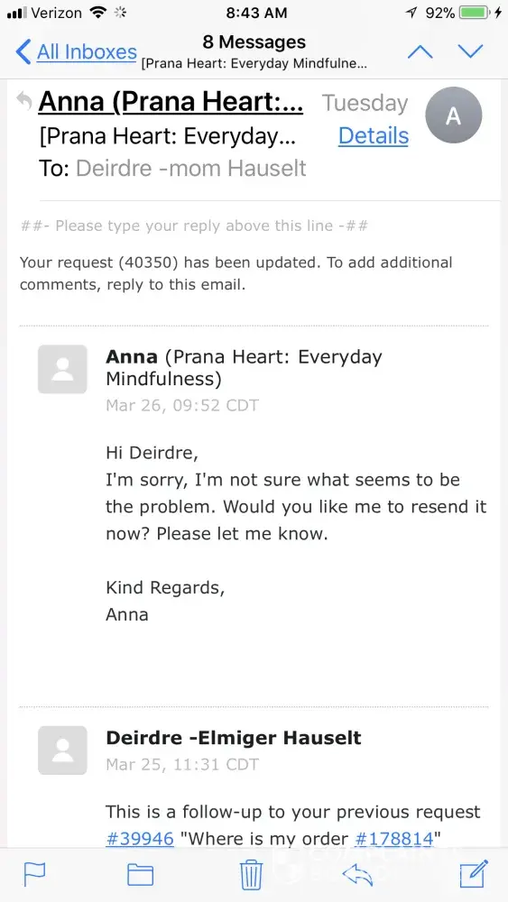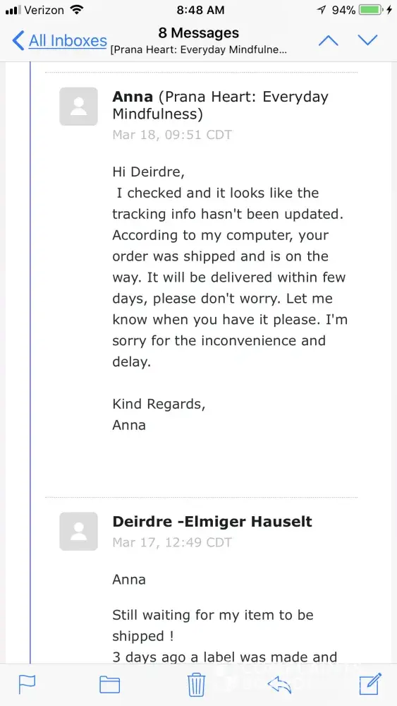 I ordered a bracelet almost 4 weeks ago and have received NOTHING! I received an initial email from Prana Heart stating they were getting my order ready to be shipped. A couple of weeks later I got another email thanking me for my patience, as they were really busy and would ship my order soon.