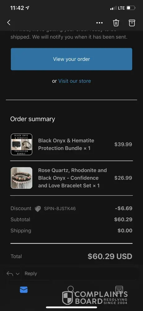 It's just got taking too long at this point. I'd prefer my money back on the Rose Quartz black onyx love set. Also my other bracelet black onyx protection bracelet bundle. Email [protected]@outlook.com.