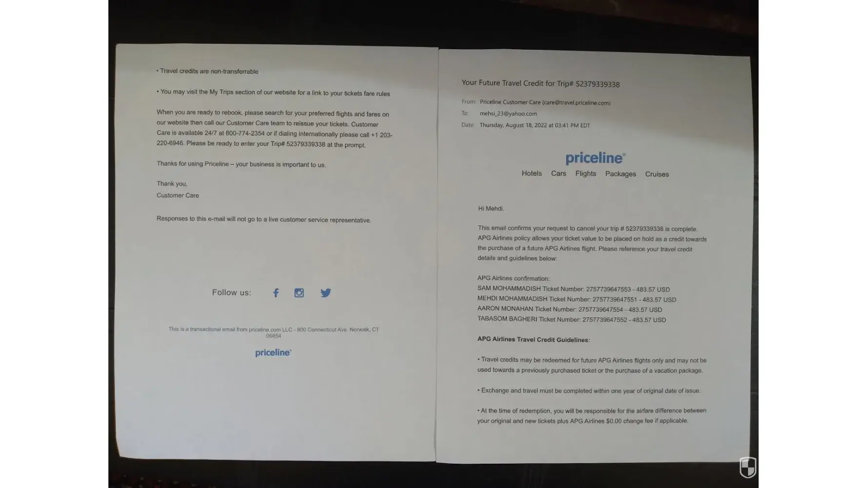 Priceline giving customer the run around on Airline Ticket Purchased 02/26/2021