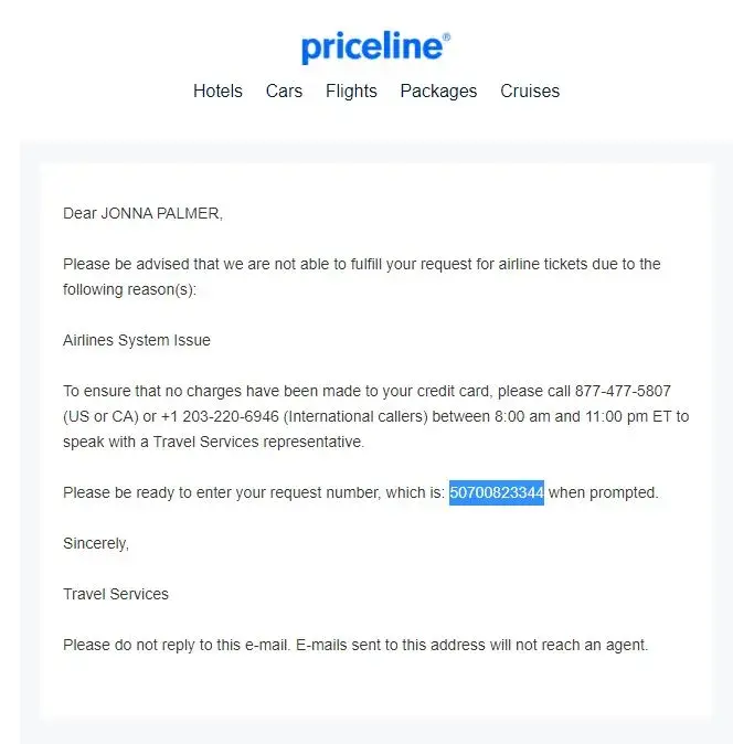 I have the same problem. Priceline is a scam and should be avoided at all costs.