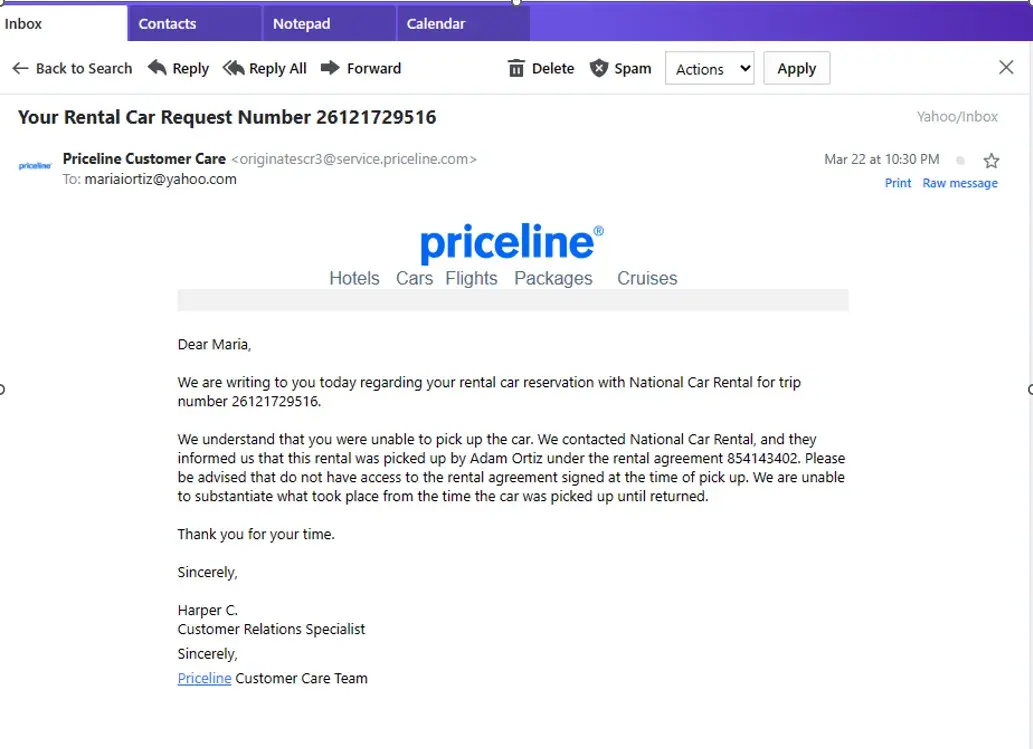 I had booked a vacation through Priceline for October 10-17, 2023.