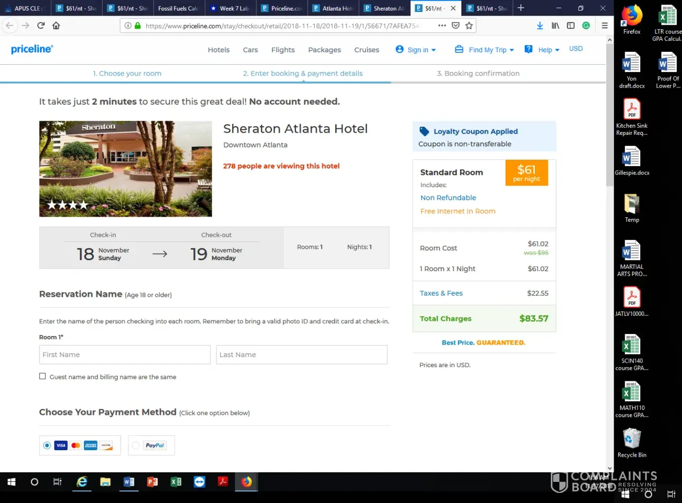 I called Priceline back again… same response. "So sorry, you really have no choice but to fly alone or lose the money". I wasn't about to fly to California for no reason when my purpose was to take this puppy.