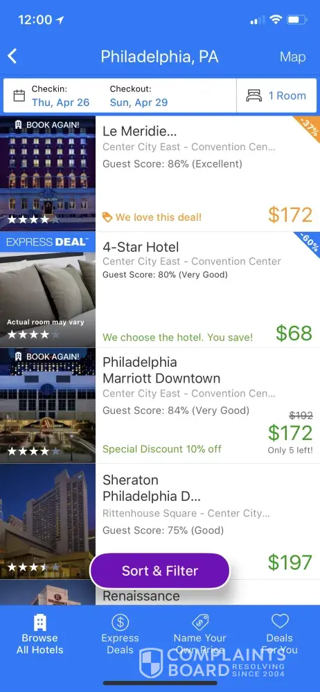 On March 5, 2018 I book an Express Deal hotel room on the Priceline app for 3 nights at $91/night on the site which is available to the general public.