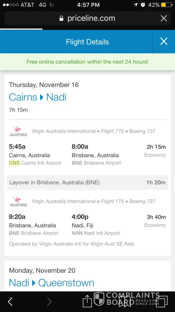Priceline customer service is a lesson in frustration. There is no service. No admission of their error.
