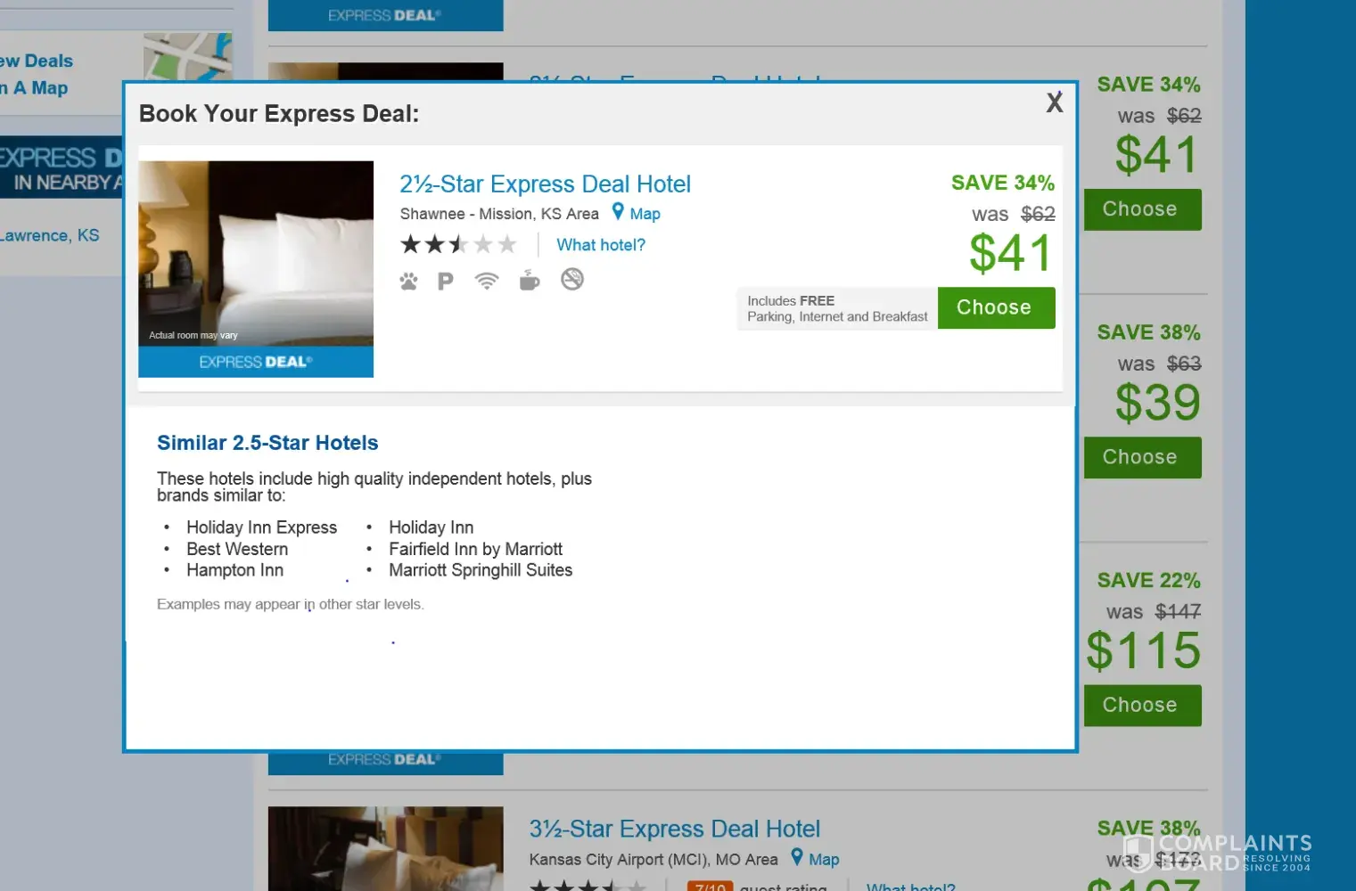 As I know now Dumb Idea but I had done it 2 other times and they really did what they said they would do. When you book you can look at what the hotels should be... In theory. They place a hotel box that shows the hotels or at least the type of hotel you will get if you use their express deal function, The problem is they switch the hotel to a bad hotel nothing like they put in the online add. As far as I know bait and switch has not been legal in the US for a very long time yet here they are advertising and doing it at a national level.