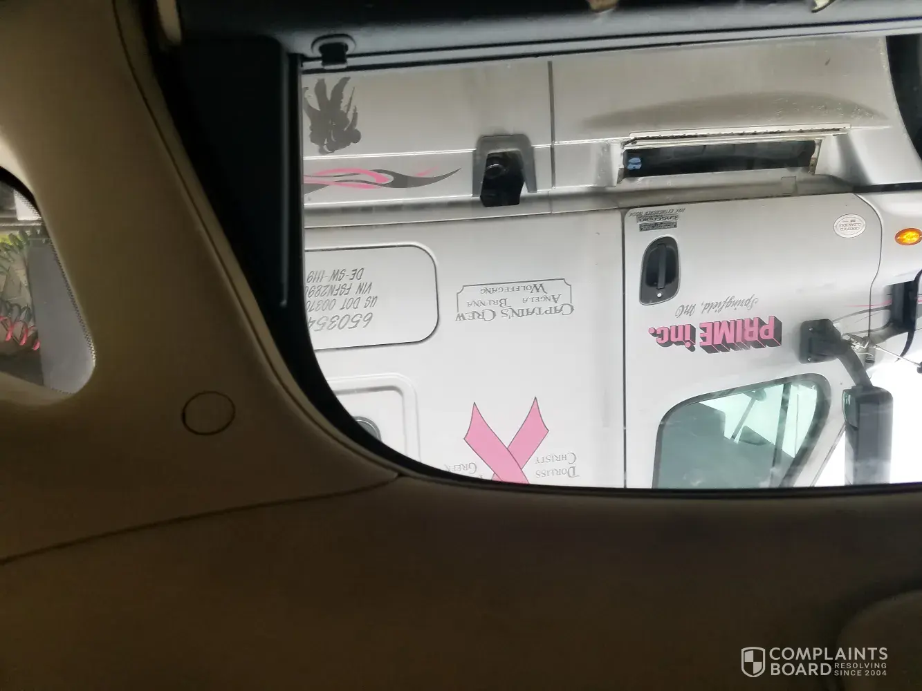 The Prime driver drove off my driveway on 9/16/2022 at about 12:20 . She made a lot of ruts in my grass. This is my septic system. At one point , I thought that she was going to flip the truck over, but I got her out without a wrecker. This will take a lot of work to fix - soil and grass seed and a lot of raking. I have some pictures. I am not a happy customer.