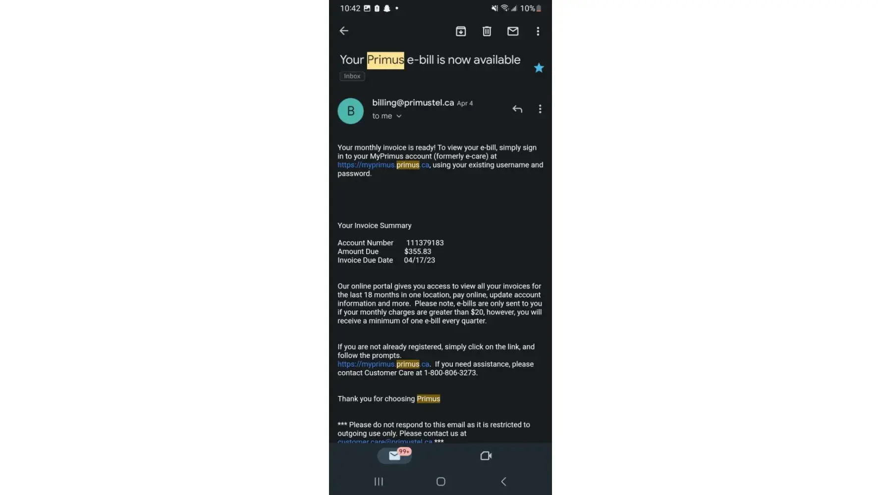 I have received very poor customer service from Primus as well.