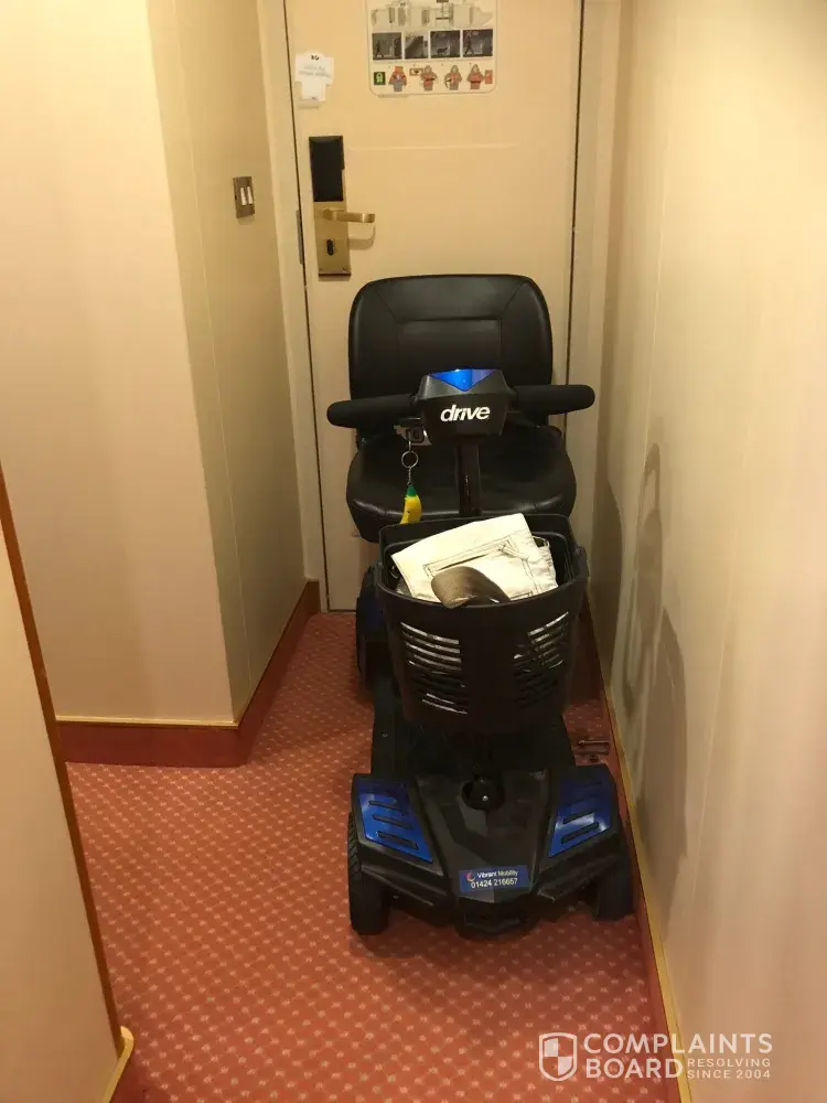 Unbelievably Princess cruises still managed to give us a unsuitable cabin, the only place we could store the scooter was against the entrance door, which contravened your own safety code.