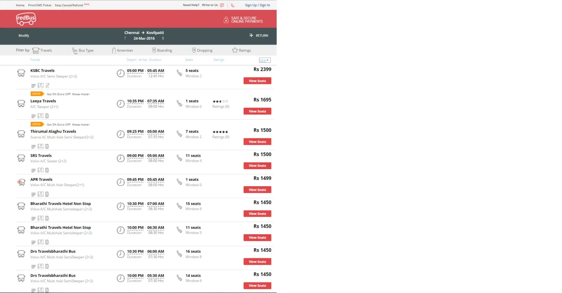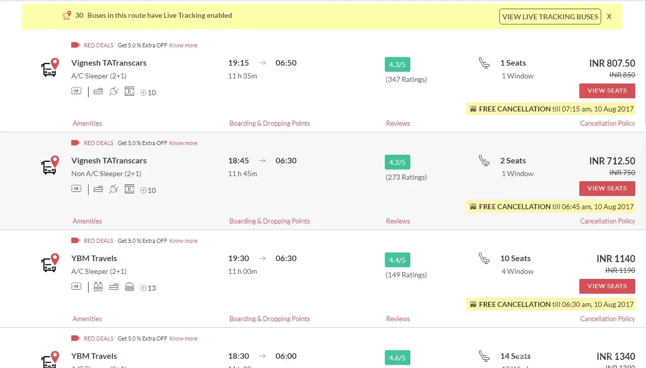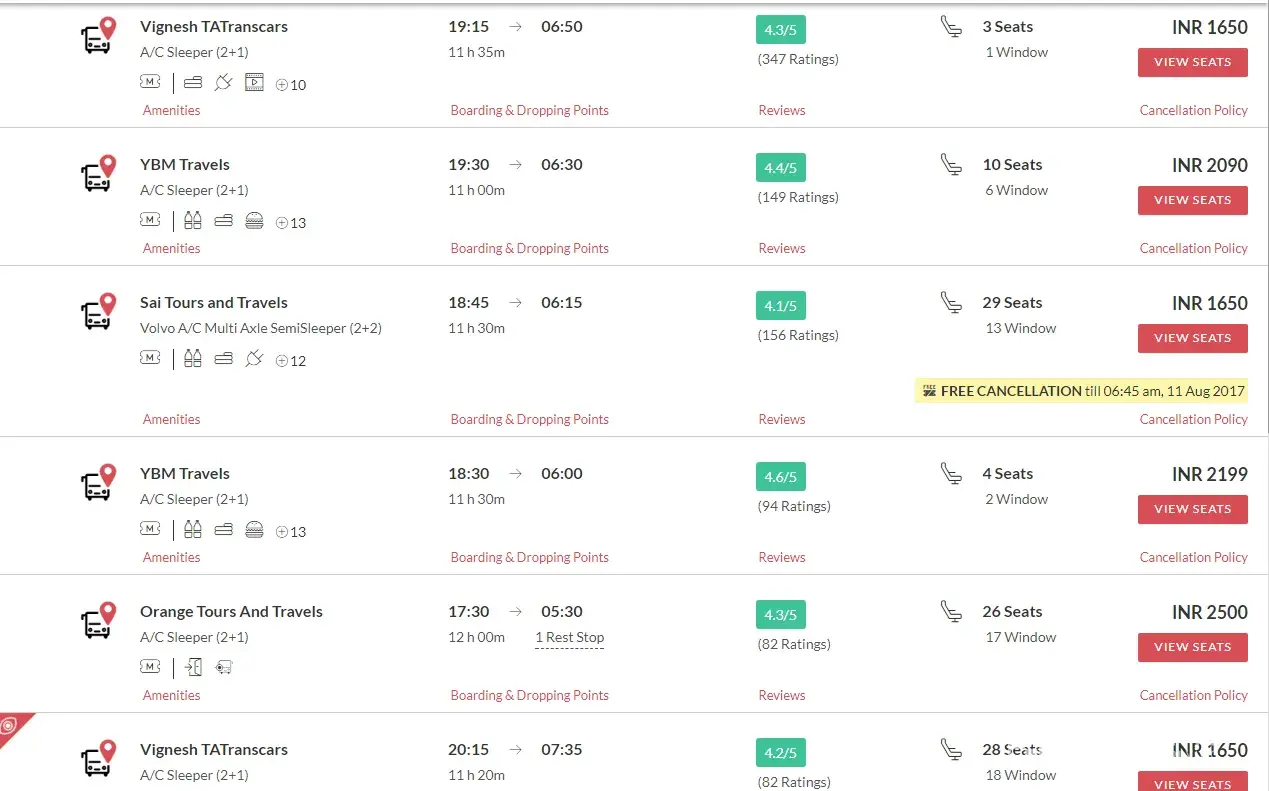 I have booked ticket from madurai to chennai in SBS travels worth of 900rs, sleeper. SBS is sri balaji travels, but while boarding, th they sent RR travels. RR travels bus quality was ultimate bad with broken lights, old bed covers, half dcreen and no screen near window. The highlight is, I booked it for 900rs at 2pm on the same day of travel. At 7pm, same bus fare was reduced to 700rs in tickrt goose itself. Adding to this reduction in fair and bad quality of bus, they were filling the rest of th e sheets in bus and left madurai around midnightt 12AM. Very bad travel experience I faced so far...