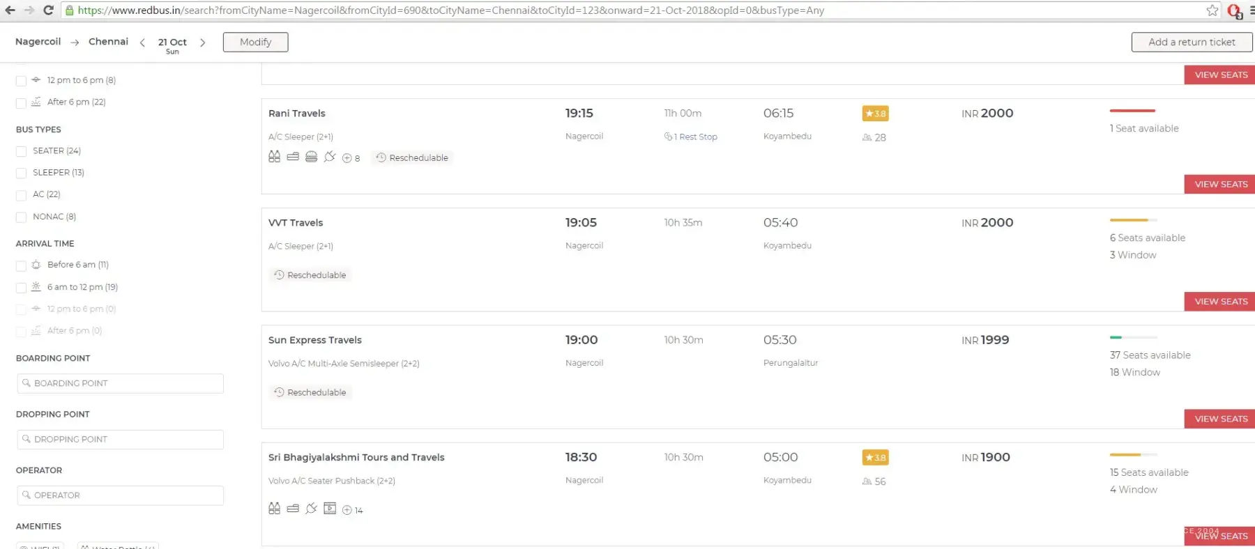 From Nagercoil to Chennai on 21-10-2018