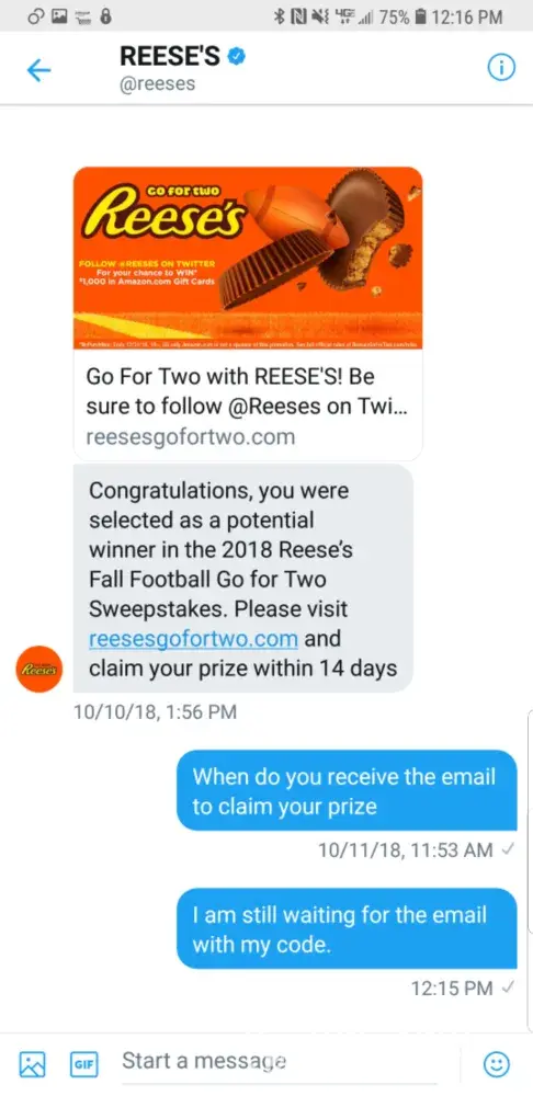 I won an amazon gift card during a reese's promotion at the very beginning of October. I was told allow 6 to 8 weeks for email delivery. It has been longer than that as of today 12/13/18.