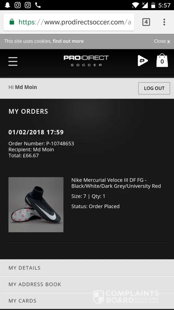I bought 3 pairs of football boots from Prodirect in Feb 2017.