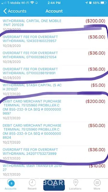 On 10/19, I signed up for a $2.99 weekly trial to a site. Then on 10/21 I was charged $9.99 apparently for the trial to be converted to a monthly fee. On the same day, I was charged $50 and then $200. Those charges stayed pending on my account for 9 days and finally posted on 10/27. This has caused me to incur 11 NSF charges as I was not about to put more money into my account for them to take. I had to cancel my debit card and my cell phone payment did not go through because it was tied to my debit card and I almost had my cell phone contract cancelled. I would like to have my $250 returned because I have no idea what the heck that is for. I would also like some sort of compensation for the NSF charges (11 x $36 = $396). I can live with the $2.99 becoming $9.99 but the rest is pure theft. I will also file a complaint with the BBB because apparently they do this often. Bad business practices!