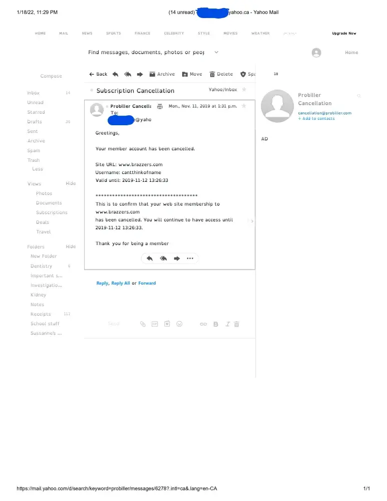 However I recently discovered that it did not. So unknown to me I was paying monthly to Brazzers for an account I had not use once for over 2 years. These charges added up to over 1000 Euro. I never got one email from Brazzers this whole time. The only mention was in a Probiller email when I signed up on 16 February, this was tucked away on a header in the email informing me of Pornhub payment. Incredibly easy to miss. Why was this not made clear that the cancellation is separate? Everything done was tacked on to Pornhub, they used the same bill service, the same sign-up page, the same email address, yet for some reason Brazzers kept charging me.