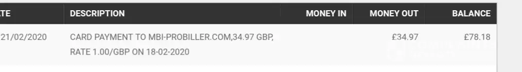 1. I see £95.88 on my bank statement from an mbi-probiller. What is this? (I can tell you the year is 2020, I do not pay for pornography).