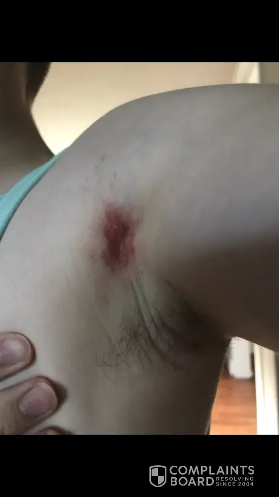 My 16 year old son used Old Spice Deodorant and developed a severe reaction and chemical burn bilaterally in his axilla. This started on the morning of Jun 6th after using your product. I brought him to the Dermatologist yesterday and she prescribed a cortisone cream for him to apply. This is quite difficult to use because it is in a tape form and he has hair in his armpits. He is in a lot of pain and can not participate in rowing (crew) or drums, which is non-refundable and quite expensive. He is working from home and has to sit at his desk with pillows under his elbows to prevent the skin from touching. I have since read online that this seems to be an issue with your deodorant and multiple people have also received chemical burns for your product. I would like for someone to discuss this with me further. I will include some pictures.