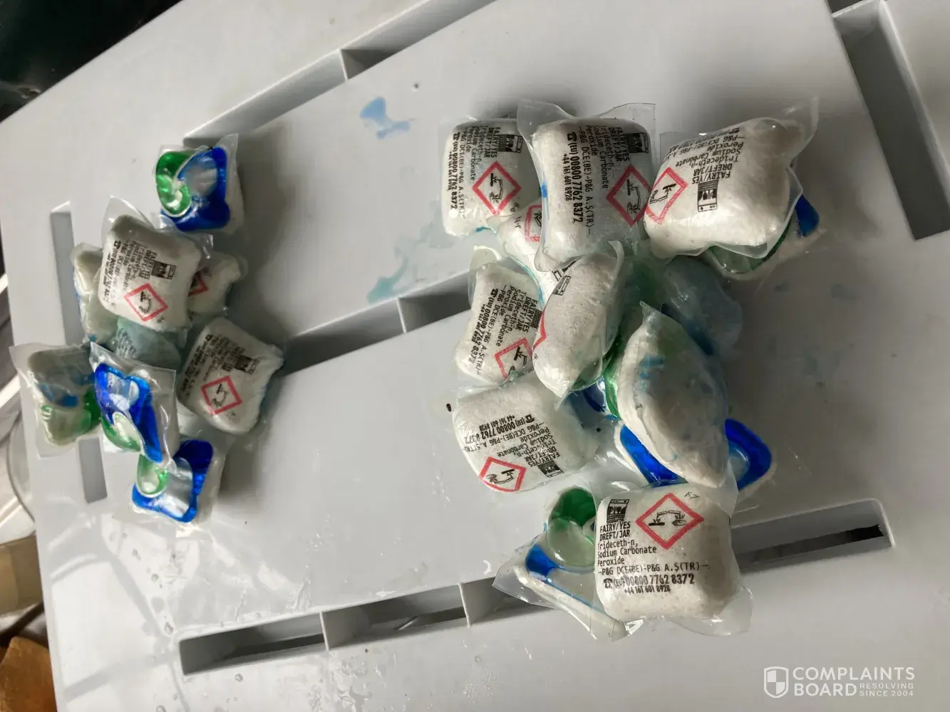 I purchased the tablets from Asda this week after three attempts of using them in my dishwasher they did not dissolve leaving the tablet glued to the tablet dispenser and the powder part lying on the floor of the dishwasher. I usually use this without this problem I wonder if a production batch is faulty.