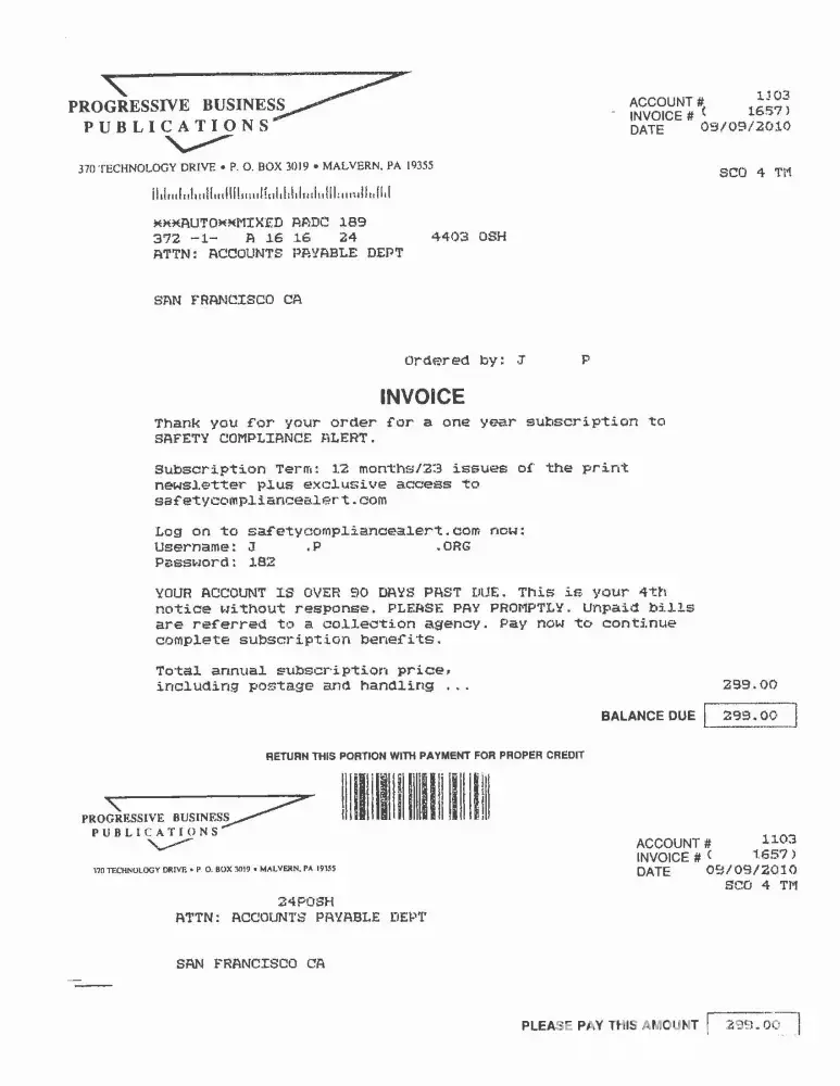 Progressive Business Publications fraudulent invoices - no orders