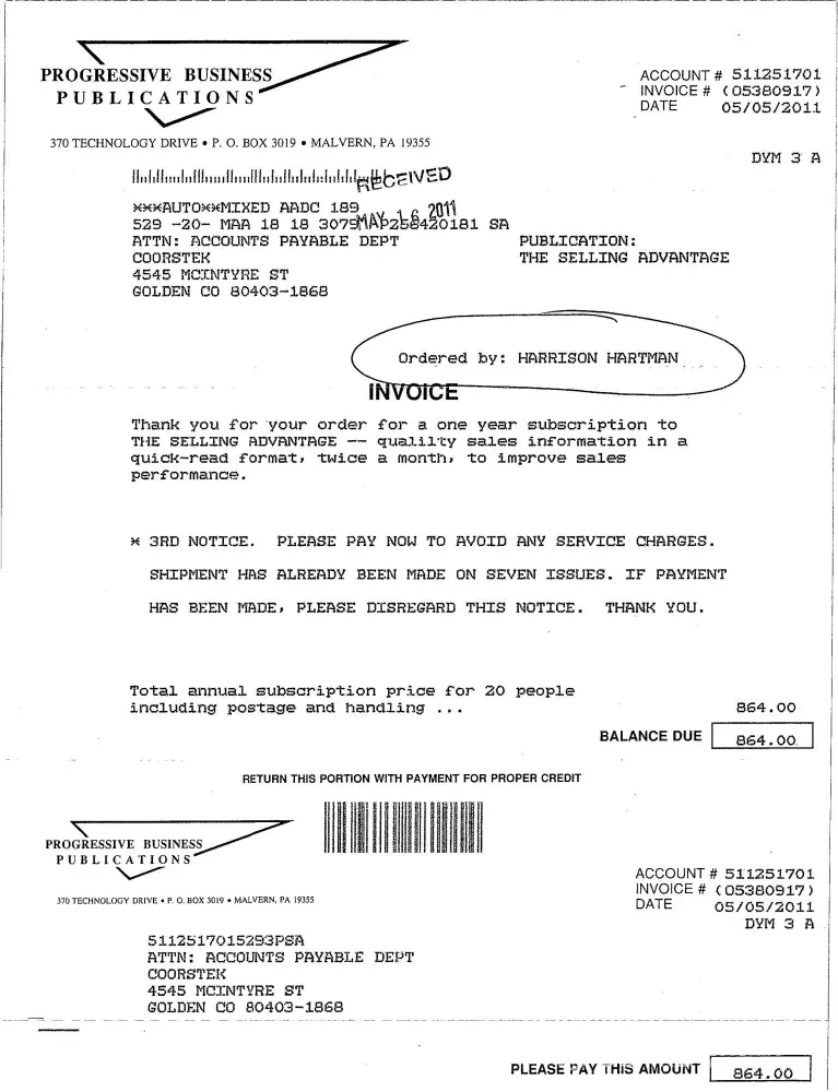 If you get a invoice from Progressive Business Publications all you have to do is e-mail... [protected]@pbp.com