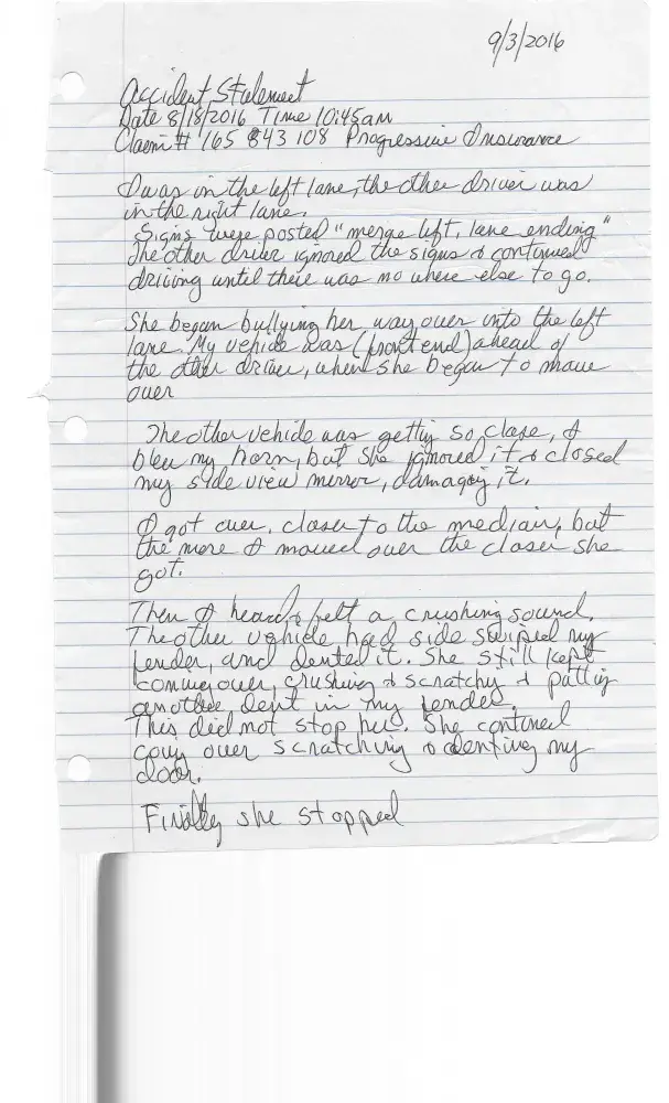 I have sent them a written statement, of what occurred, estimate of the damage, and pictures. No response from Progressive