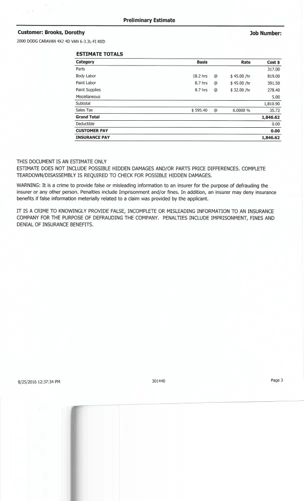 I called the representatives supervisor, who was nasty, and uncooperative, to discuss the claim. I stated, you have the pictures, so can tell your client is at fault. He said "Oh, we can't tell from the pictures, we just want to put it in our records." This is ridiculous. ( Call date to supervisor 8/31/2016 at 3:35 pm.)