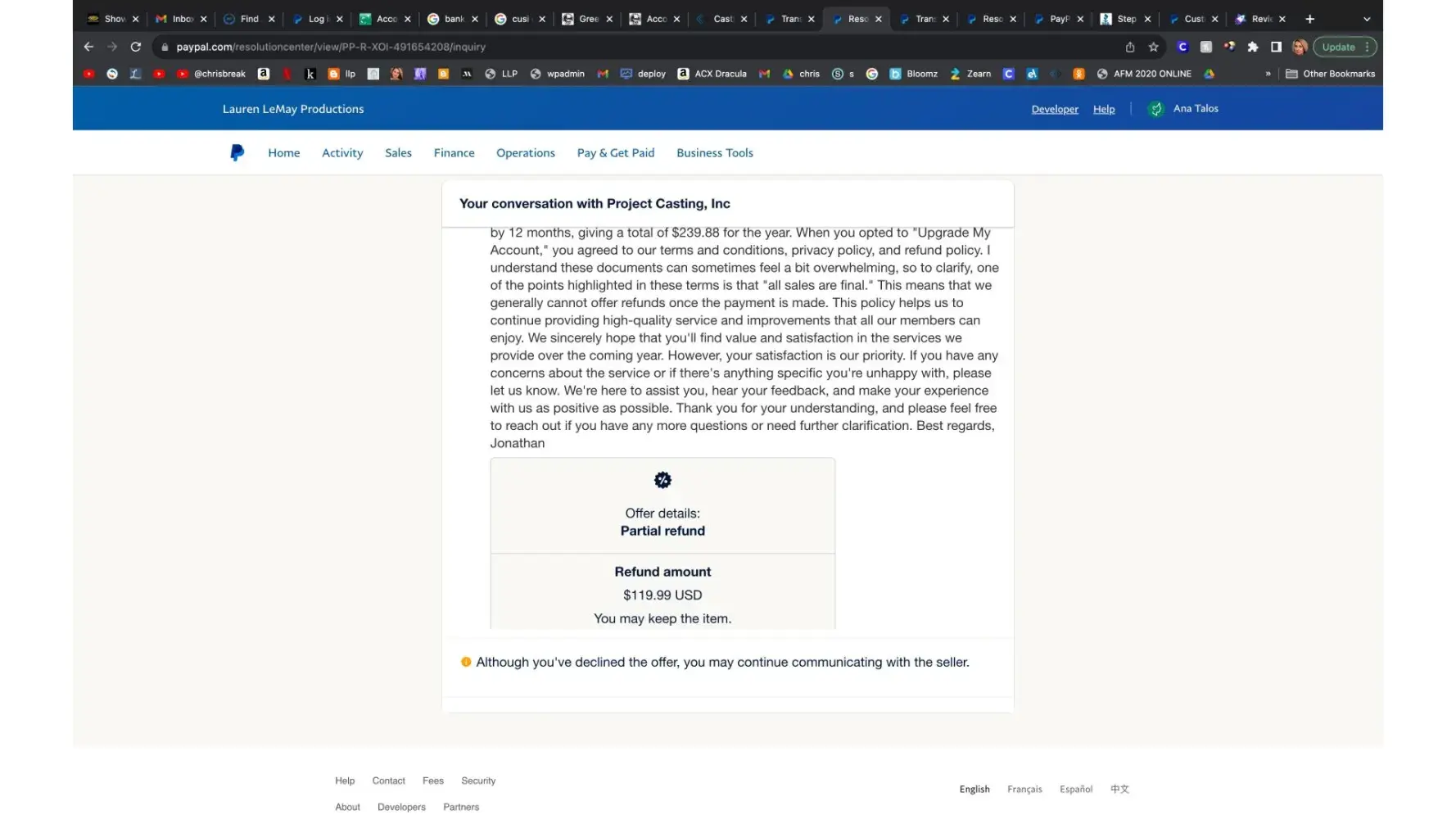 I requested multiple times to be refunded this amount I was charged without my consent and they never replied to any of my emails. On Paypal they refused to refund my money and they offered to refund only $119.