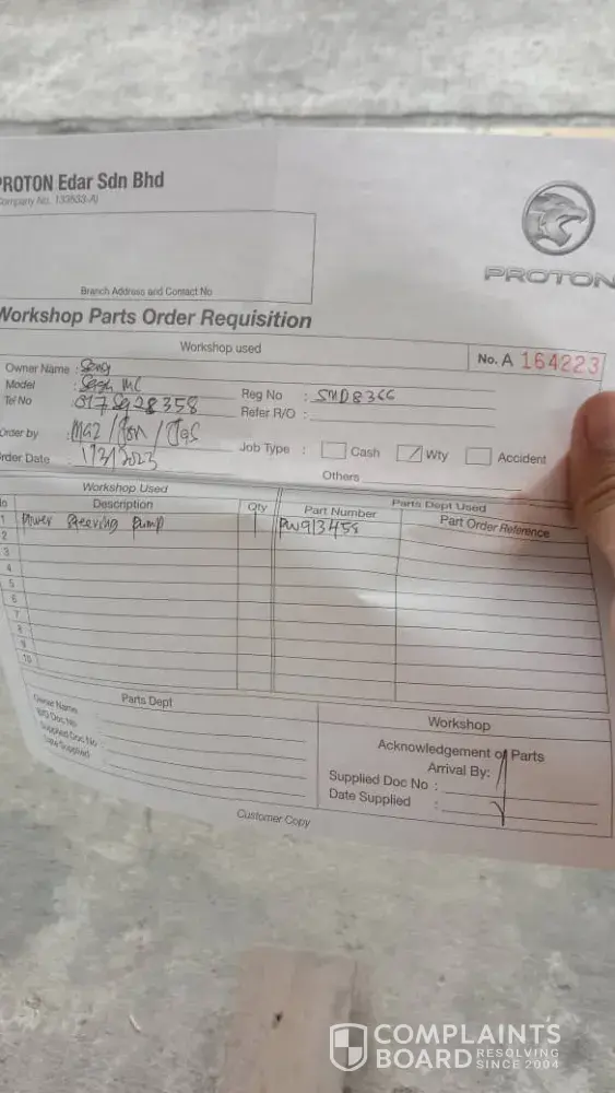 I having a same thing happen maybe worst then you ..i juts bought a car in a week n the car all the way start have problem till now..I bought a satria Neo 1.6M in july 2009..The sales man told me that have to wait about a mth to get my car...but until now i get my car..is 1000% worst then a 2nd car..I been going back to Proton more then 8 times because of the proton technology failure...Proton Headquarter can show u everything has been change but that was only a "list of papaer" that make buyer feel better...I will be appointed lawyer to Proton soon.until my car break down in singapore..n the SG proton showing me ..that my car has nvr been improve after all this repair n services..omg you all tell us ..we as malaysian n suppport back malaysia production..n overall wat was proton can gave us? or making our life more complicated..I reallly very gave up on proton..Hope more ppl can see this all ..think twice be4 buying a PROTON EDARAN PRODUCTION is TERRIBLE!