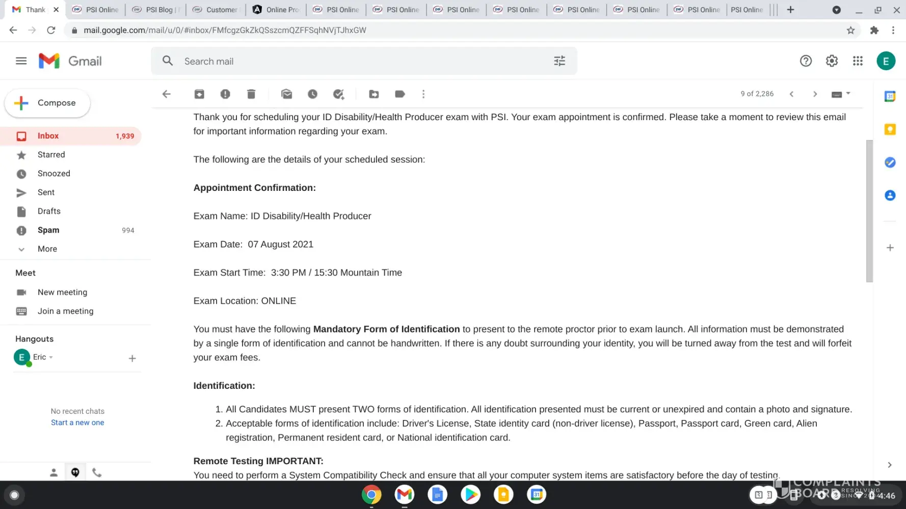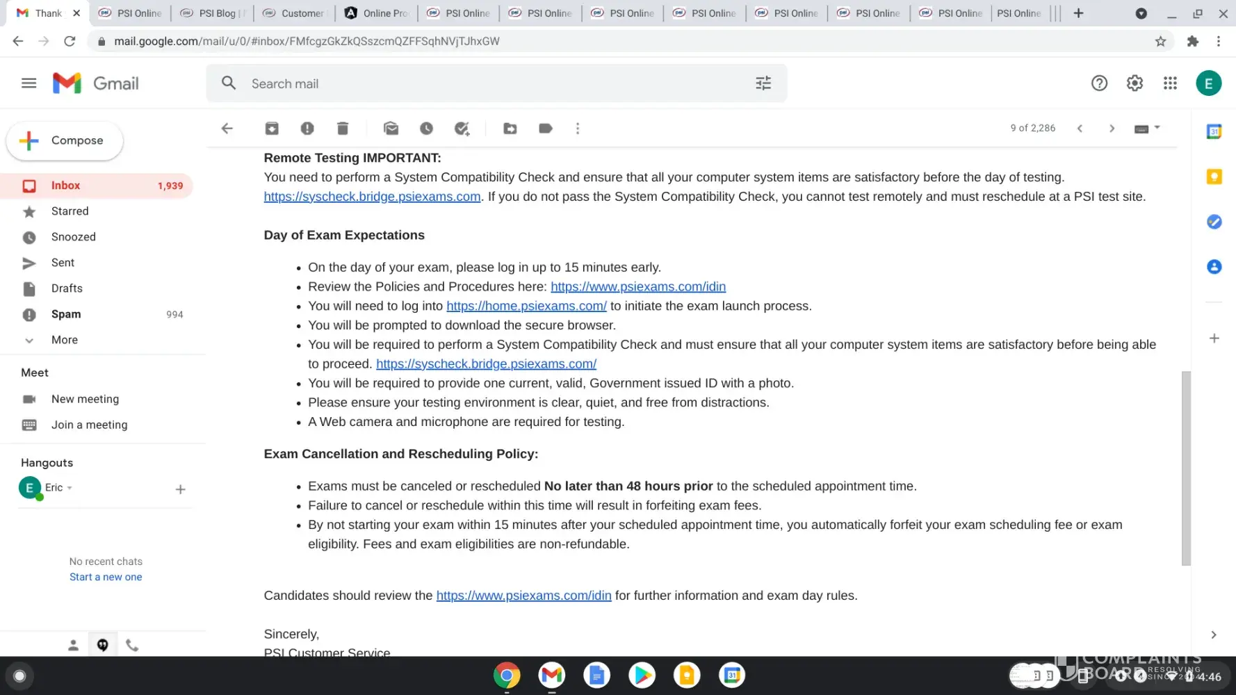 I was online with tech support for about 3 hours Wed. just trying to use the link YOU sent to schedule it. Everyone I spoke with had terrible English-assume you outsource to a foreign country. On hold another hour yesterday trying to log on to take the exam. Then a half hour waiting on a proctor. Told proctor no way I could pass after this fiasco. Did not get a fair opportunity. I missed by 4 points. Was scoring mid 90s on mock tests. All PSI's fault. Tried to get in touch with customer care-another hour on hold. Now I am told that I can't get a refund and must wait 10 days to re-test (on site, because I'd have to be crazy to use your remote 'system' again). When I finally got in touch with 'customer care' was told that hour wait times are normal because you are such a big company. You provide the absolute worst experience possible. It apparently is your business model so that, when people fail, you make more money on the retests. Despicable. I will make it my job to warn others. Based in your previous reviews, this is probably normal PSI customer service. Reporting to BBB.
