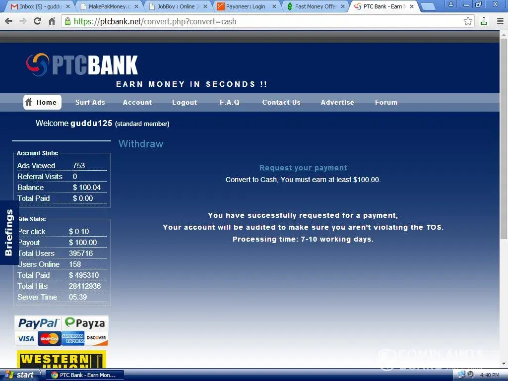 I joined this website Ptcbank.net to make money online. I requested payout from 15 days and the website is not opening after i request payout.