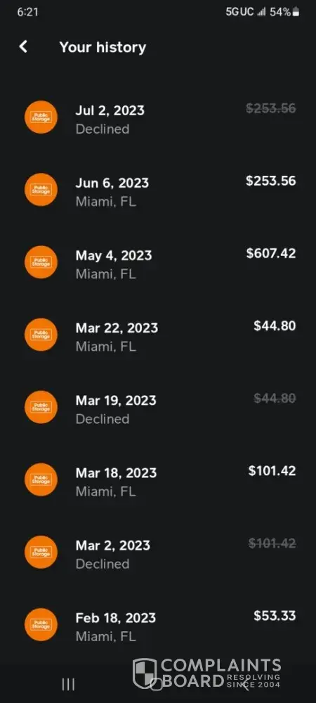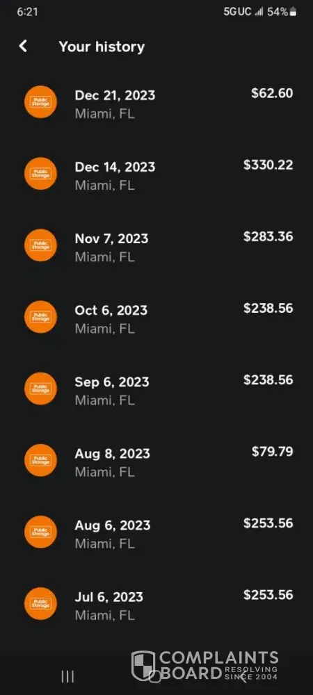 My rental unit with Aventura Florida Public Storage perpetually changes and increases with varying fees. I had worker Robert remove insurance fees that I never authorized, then the rent increased again from $238.56, to $253.56, to $283.36, now my unit (#2242) is $313 + $17.22 tax! December 2023 the Public Storage app wasn't accepting payments and I assessed a $62.60 late fee that Jose refused to remove. Incorrect records indicate a late fee was waived in August 2023: this was an insurance fee that wasn't authorized by me which was removed. It seems they keep adding additional fees and raising rate on my unit without a valid notice or reason.