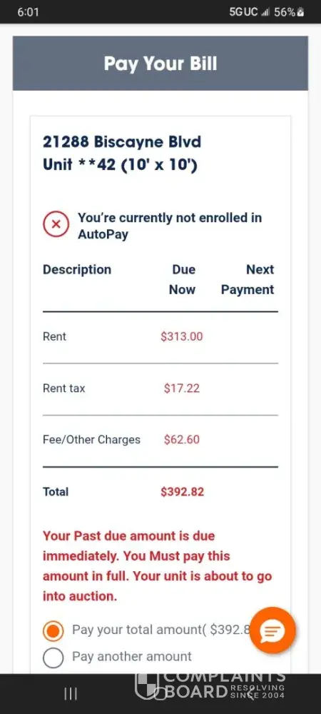 Public storage. Bogus chatge of $16 and enrolled me in autopay. Didn't sign up for that!