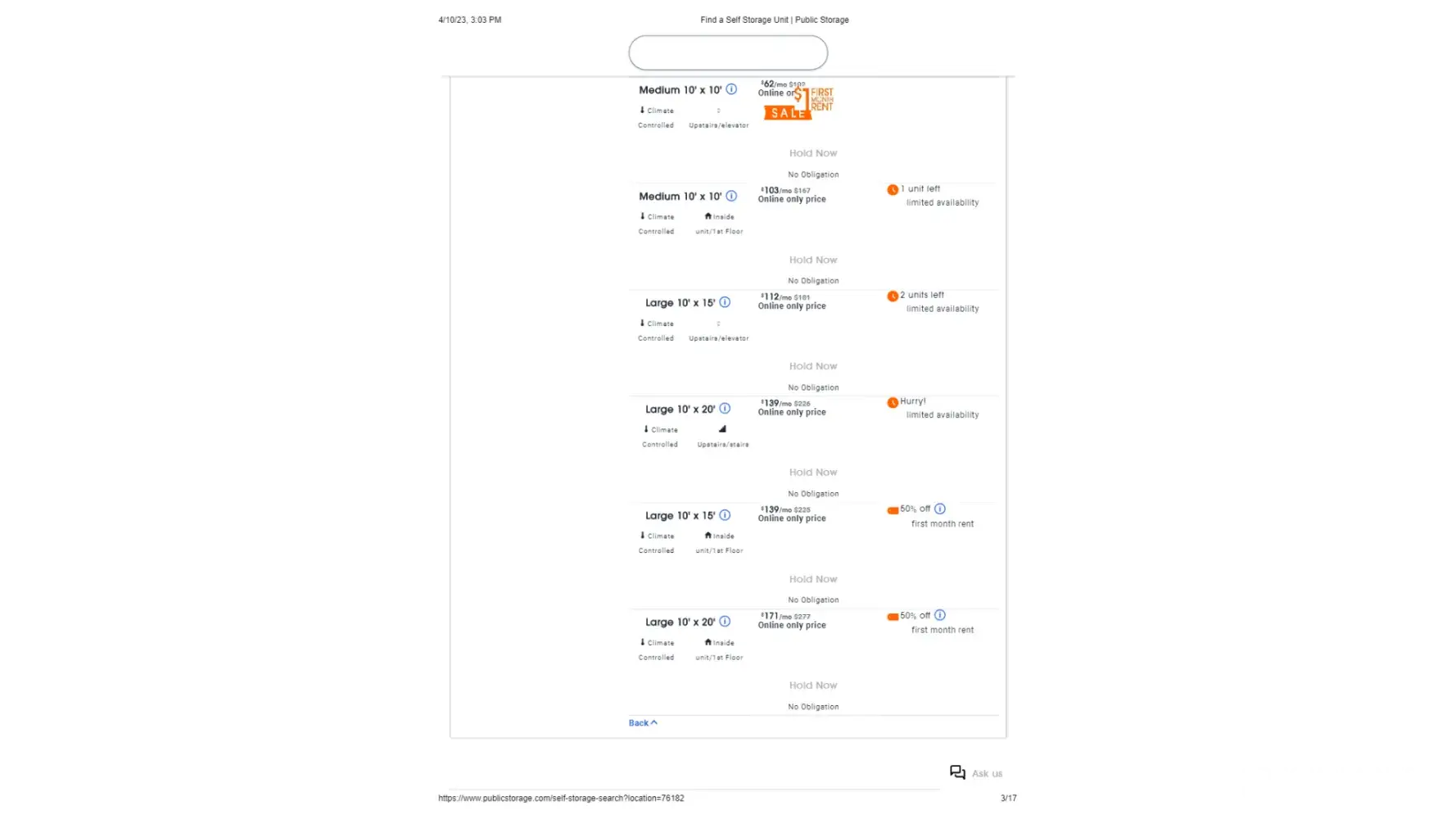 Also, their website has a chat feature which doesn't work when you click on the link. And their website based on this statement, "If you have questions about self storage, our agents are here to help by phone, email, US mail or at any of our locations.", should have an email address displayed for communicating. Nowhere on that page is there an actual email address. They clearly have designed everything so that it is difficult to communicate with them.