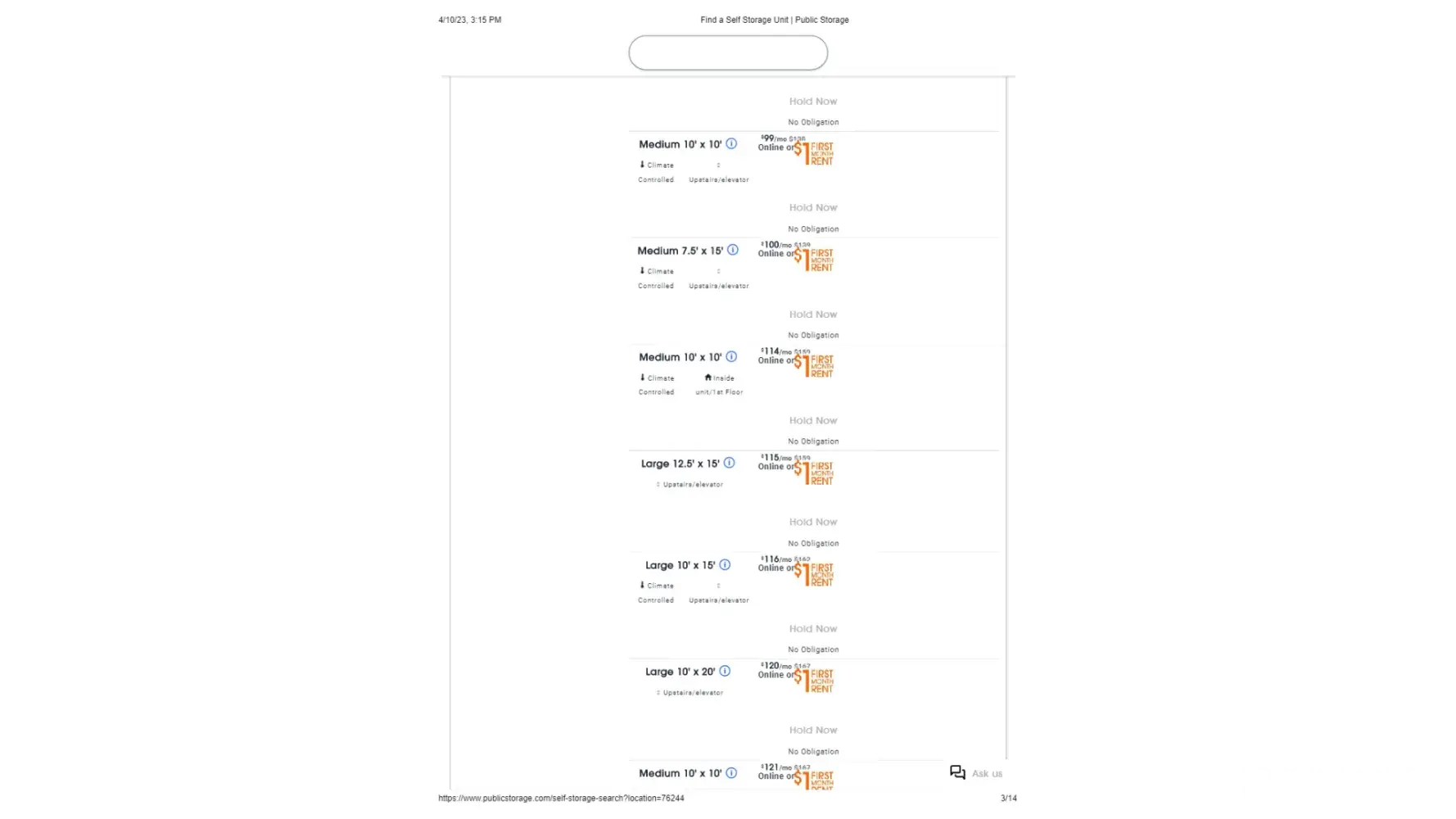 3/28/23 at roughly 2:30pm MT. I live 40 minutes away and am needing to slowly move from my unit over the next month since I do not own a car and can only get to my unit once a week. I visited my storage unit (Public Storage, AZ) for the first time in a couple of months. There are a lot of clothes and some home decor and appliances I wanted to donate. I wanted to pack up a bunch of clothes to go wash them before donating and was at my unit for a maximum of 10 minutes when 2 employees approached me.