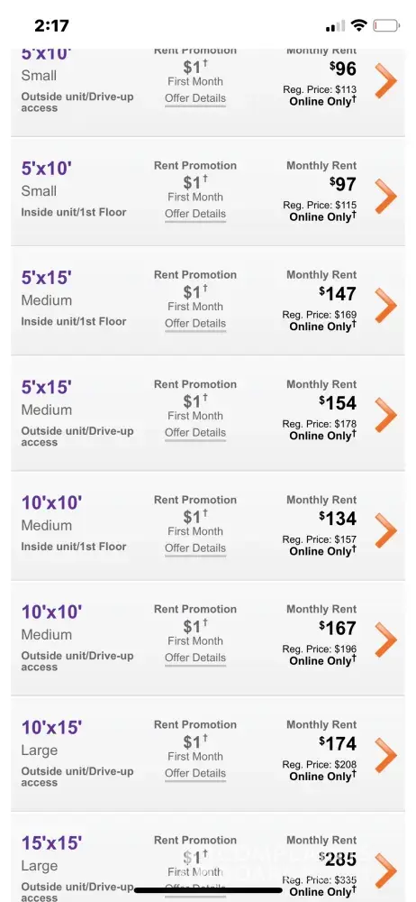 I rented a 10x15 unit, and told them I wanted it for 2years. They knew I was going to be out of state. On the 3rd month, they increased my monthly rate by $45.00 higher. This is so wrong! I've rented from them several other times over the years, and this has never happened. I just looked on line, and a 10x 15 storage is being offered for $174.00, and it says the regular price is $208.00!