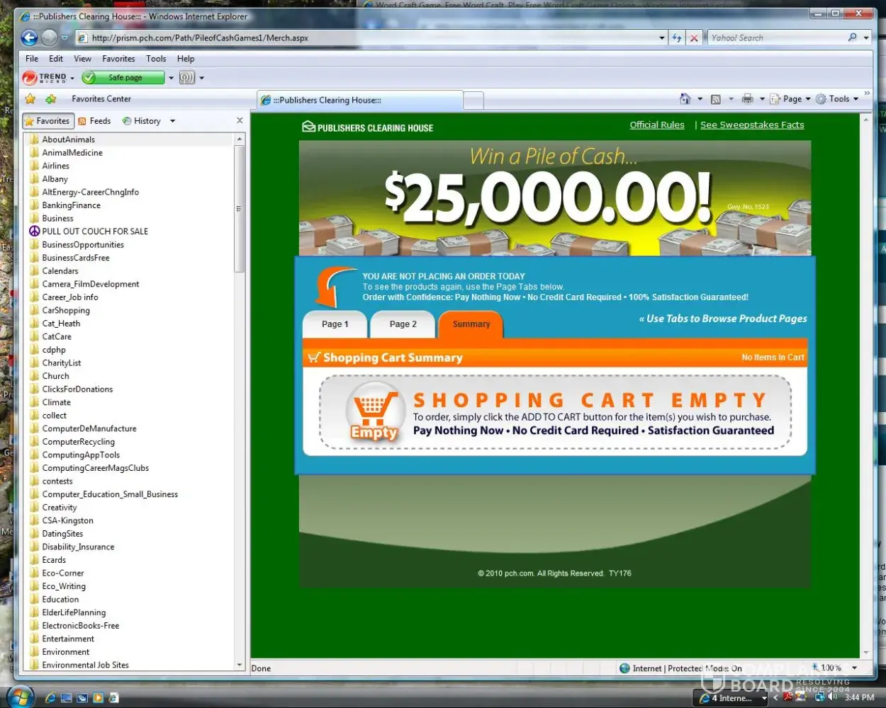 I want to put this so called PCH "scam" and it being "fraudulent" to rest once and for all. For all of you out there that think it is... WRONG! In order for it to be called this, you would have to pay to enter any given contest. Just like you would purchase a ticket at your local gas station, convenient store, etc. etc. Which by the way, do have real people that do win real $$ because they do so. PERIOD! If you note, underneath every contest they clearly state: No purchase necessary to enter. A purchase will not increase your chances of winning. Right there, legally they`ve got themselves covered. If you did in fact have to purchase something in order to be entered. In a "roundabout" way you are actually still spending $$ to be eligible to win a prize. They can put as many fake, phony and fictitious prizes as they want to on their site. Again, doesn`t matter. Legally they can get away with it. Now to the real "meat" of this post. I am now right around 6 1/2 years into conducting a 10 year controlled experiment. This will know doubt in my mind and in your`s, absolutely blow PCH "right out of the water" "Hands down". No more arguments. No discussions. Just the facts! This has been one hell of a job but will be well worth it. I am also doing it for your benefit more so than mine. I am doing all of the work for you! Will save you a lot of wasted time and hopeless dreams of winning. The only thing I will get out of the experiment is satisfaction that will be well worth it! I have decided to do this knowing full well that I WILL NOT, NOR WILL I EVER win any kind of prize whatsoever. Now, does PCH have big winners? Yes! I do believe that the one you see all the time on TV advertising the "FOR LIFE" is real. I started out playing almost everything they had to win for a little over three years. Then realized that you could actually be on there 24/7. Believe me, I am a very busy man and didn`t have the time for that. I just cut it down to anything $5, 000 and up. Still very time consuming. Also keeping in mind as I just stated will never win anything anyway. I still play the lottery cards but only the $100, 000 and upwards to the $1, 000, 000 and Mega $1, 000, 000`s. Play every last one of the sweeps contests as well. I will then just open up the Front Page, Search, Keno, and Slot games. Only so I can "snack up" on a [censored] load of tokens (which are worthless) as I will get to here. I only do that to advance more quickly on to the next level. I am currently at the second highest. Black Diamond. It takes approximately 6 mos. or so to achieve a new level at my rate of play. Ready for this? I have received two checks in the mail for $10.00 in consecutive years. One in 2016 and 2017. For some reason they never sent one in 2018. Two days ago, 01/03/2020 for the first time. I received an e-mail right after completing every single sweepstakes module. It stated I was already a winner of $10.00 and the check is in the mail. Keep in mind, I NEVER entered any contest for less than $5, 000. Also each and every one of these checks arrived in February of EVERY year! Hhhhmmmmm? That`s odd! I know they must be monitoring exactly what I`m doing. Also that I have been consistent every day, much less every year!" They probably know what I`m up to and see all the time I am spending. Also gettin` a little nervous and feel they have to at least let me win some type of "cash prize. Therefore, they think they`re clever in sending me a "tinker toy" check that just might buy you a pack of smokes (depending which state of residency you`re in). See, right there. Not even I can say I`ve never won anything! Also got themselves covered again with saying " See, we do have real winners". Speaking of winners. I would like to know who and when are these people that are winning the sweeps prizes that are given away? You know the one`s. $1, 000, 000 plus homes, vacations, trucks, SUV`s, retirement $$, roulette wheel, $1, 000, 000 cash, money booth, money drop, serenity sweepstakes, carefree cash and so on and so on and so on and so on and so on and son and so on! I`ll tell you. It`s all part of that $10, 00 check I receive almost annually! There is know way in hell that there could possibly be that much given away. I don`t care how many advertisers they have spending money just to "hand out" and keep that site up and running. I couldn`t even imagine how much it would cost to keep a site like that up and running. On the other hand, for those big $$ sweeps they`re giving away. They are but not like they claim. Like me, $10.00 here $20.00 there, $50.00 over here. $100, 000 much less $1, 000, 000 goes a loooooonnnnnng way! Get it? About 1 year ago, I decided to take it one step further. I did my on survey with polling people every chance I get. I keep a written record on paper that I keep in my truck at all times. Seeing just exactly what PCH`s odds of winning as opposed to mine. This is for the "sweeps" entries only and excludes any type of lottery card games (completely different). I`ve asked people where I work, stores I frequent, my bank, gas stations and people I don`t even know just waiting in line with me. I am hovering now right around the 1000 mark. Four people said they have entered the ones that were sent in the mail. Two said they`ve gone online a few times, just here and there. Only one other person said they play it but infrequently. Just sometimes when they might be on the computer and thought of it. All of the others said NO. Now, having said this. My odds of winning any given sweepstakes they could possibly have. The odds of me winning would be 993:1000. That`s right! In other words, I would have 993 chances of winning in 1000! I live in Cleveland OH. It probably doesn`t make a difference though where you live. Can some of you at least try this with me as well? As I said. I am doing all the work for you. It wouldn`t take any of your time at all to do so either. Here is another absolutely ridiculous example of why you