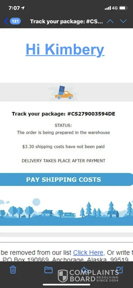 I purchased some goods through your company. I also paid in full and I paid for delivery to my address here in Australia. Now I b have received an email from your company saying I must pay for more shipping. Otherwise I will not get my goods that I have already paid for.