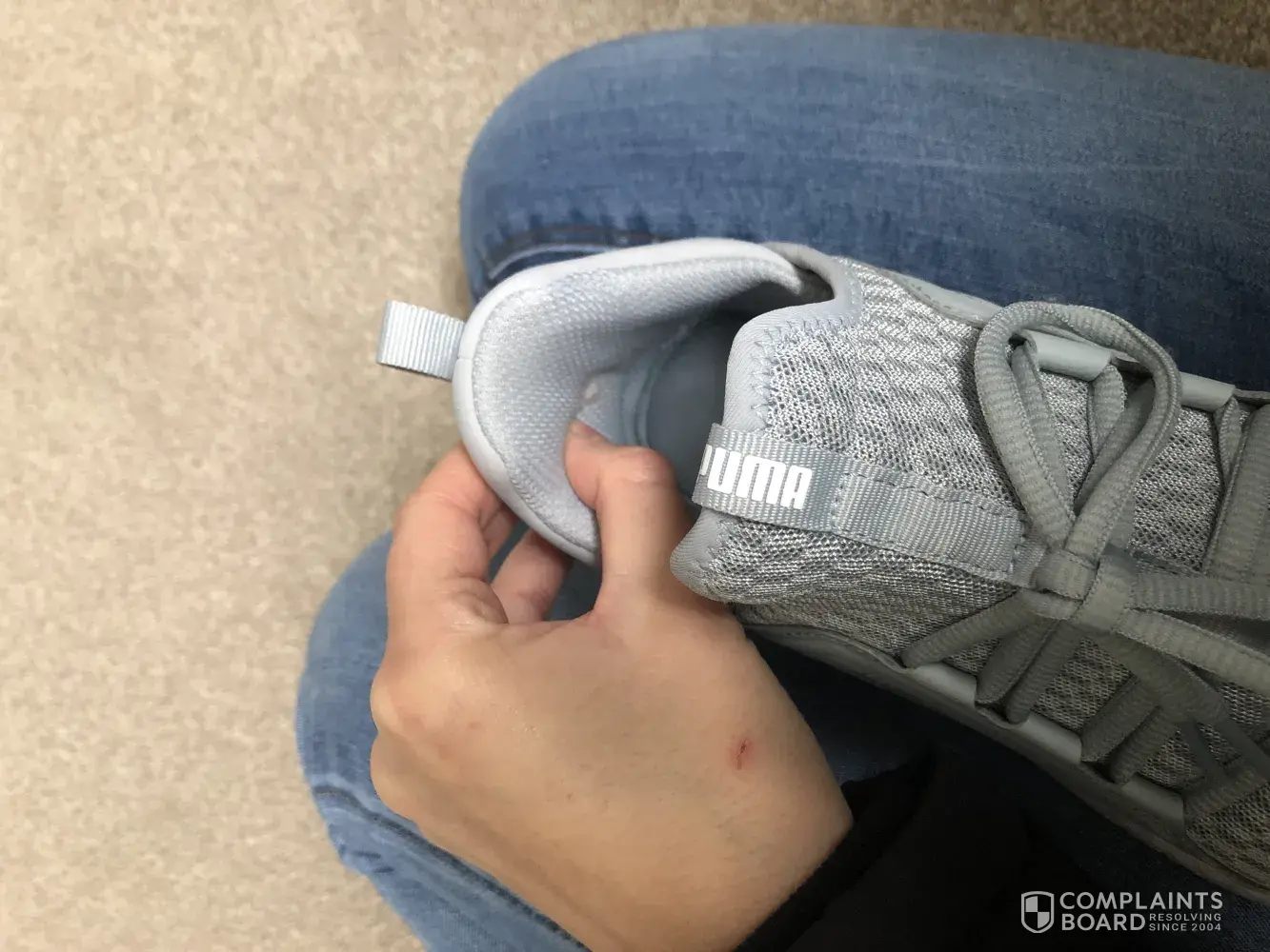 Right trainer at the back of foot has sharp piece tht sticks in back of food it can't be seen but u can feel it's sharp and sticks out. The trainers are a year old but have only been worn 5 times so I can't return to shop.