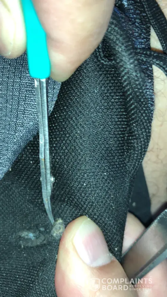 After wearing them for a few days, I felt a sharp pain on the side of my foot, near the heel. I noticed that there seemed to be a solid piece of something inside the shoe. I cut a hole into the lining, and pulled out a hard, rock-like piece of plastic (?), see photos; It caused a blister on the back of my foot. I'm very surprised that new shoes could have this defect in them. Can you please let me know what I should do?