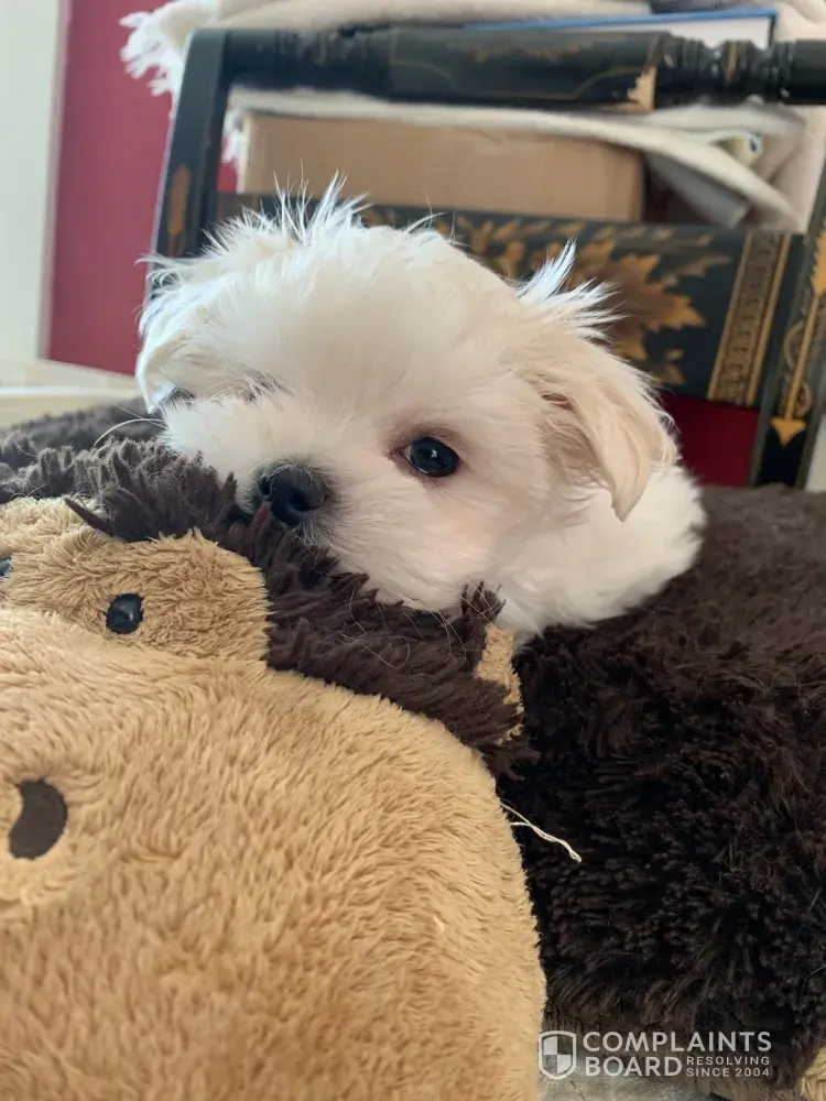 Ok, now on to puppy #2 we purchased in November 2018. He arrived on the plane in his crate and looked like a dog straight from a puppy mill. He smelled horrific, he was tiny compared to Jace when we got him the exact same age. He is a chocolate labradoodle f1b, standard. He weighed 12 lbs. Jace weighed 18 lbs when we got him. Bailey smelled so bad along with all the matted fur...there is no doubt in my mind it was a puppy mill. I gave him three baths that night he came home and 3 more the next day...this is not an over exaggeration. He still had his dew claws. The way he acted when he got here was not right either. His paws looked like they never saw the ground. Contacted puppy spot and they did an "investigation" into the breeder...whatever they can take pictures of any farm and send them over. I still don't believe it. If this wasn't a puppy mill, they did a really [censored]ty job caring for this puppy. After he was cleaned up, took him to his vet visit and long behold, giardia. It didn't surprise me. Fast-forward to January 2019, Bailey has some type of cyst/tumor on his eyelid, we are treating it with antibiotics, but it is not working. Now today, he started to have seizures...yes seizures...I left them a message regarding this, I better get every penny back that I paid for this dog or I am going a produce a lawsuit so big it will put this place out of business. Bailey is still a very small dog..if he is a standard and gets to be 40 lbs I will be surprised. I love both of these dogs so much, but the vet bills are piling up.