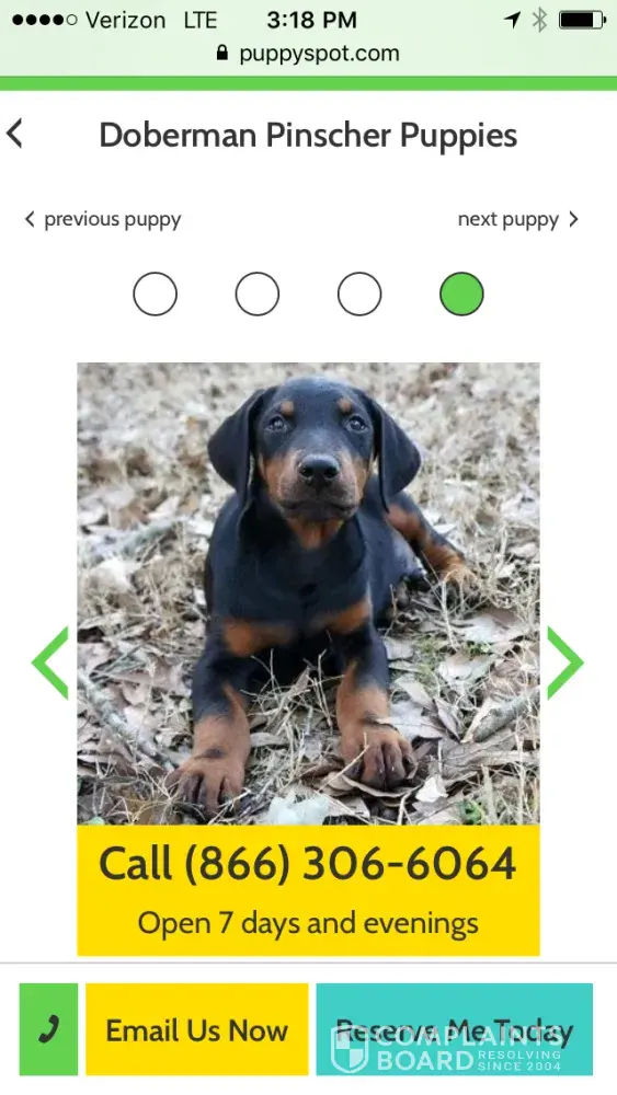 I'm sure there are customers out there who have had a great experience with puppyspot. com but from a breeder's perspective, this place is an absolute joke. They have a team of salespeople who collect everything but your social security number to "approve" you to be able to sell on their site. Pedigree documents, pictures of the living quarters, pictures of sire and dam, proof that they're being seen by a vet (All great things for buyers). But once they collect that information and you become an "approved breeder" you'll never hear from them again. Countless calls unreturned, just as many emails never acknowledged. Promises about waitlisted clients, and celebrities seeking your puppy are all lies. We listed 7 puppies from our litter, collectively they amassed over 20, 000 views.. Not one inquiry was received. On top of that I couldn't tell if the counts were even accurate because the would fluctuate up to 300 views up and down every day.